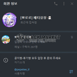 🔹 [사기 제보] 뽀로로 패티실장 (2025-08-31)🧾 사기 계정 정보- 텔레그램 닉네임: [뽀로로] 패티실장- 텔레그램 ID: @pepetee_tl >@cacacatt08- 활동 채널: 뽀로로 공지방 (구독자 297명)📅 피해 일시2025년 8월 31일🧩 사건 개요'패티 프로젝트'라며 25,000원을 입금하면 금액을 불려 수당을 챙겨준다고 접근.초반에 62만원 성공이라 속이며 추가 수수료(155,000원)를 요구함.원금 환불을 요청하자 욕설을 하고 차단.💸 피해 금액25,000원 (원금 미환불)🕵️ 수법 요약1. 소액 투…