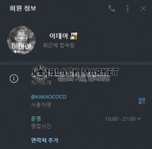 🔹 [계정거래 사기] 이데아 카톡매입 사기 제보⚠️ 블랙마켓 - '이데아'의 이전 사기 이력 조회🧾 사기 계정 정보| 항목 | 내용 ||------|------|| 닉네임 | 이데아 || 텔레그램 | @KAKA0COCO || 활동채널 | 이데아 카톡 구매 공식채널 || 소개문구 | 신뢰 정직 고정거래처 환영입니다 || 운영시간 | 10:00 ~ 21:00 |📅 피해 일시11월 9일 오후 6시경 연락, 10시 입금 약속 후 연락두절11월 10일 오전 10시경 재연락 시 욕설 및 차단🧩 사건 개요피해자는 11월 9일 오후 6시경 ‘이데…