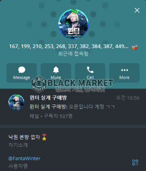 🔹 [계정매입 사기] Winter 실계 구매 사기 제보⚠️ 블랙마켓 - 'Winter'의 이전 사기 이력 조회🧾 사기 계정 정보- 텔레그램 사용자명 @FantaWinter- 프로필명 Winter- 운영 채널: ‘윈터 실계 구매방’- 특징: 실계 구매를 미끼로 접근 후, 사용하다 이보 걸리자 판매자에게 책임 전가📅 피해 일시- 2025년 1월 2일🧩 사건 개요- 제보자는 상대에게 카카오톡 실계정을 판매함- 판매 당시 계정은 채팅 내역 없는 클린 상태- 상대는 정상 거래 진행 후 번변 요청, 제보자가 번변 처리- 재가입까지 모두 완료된…