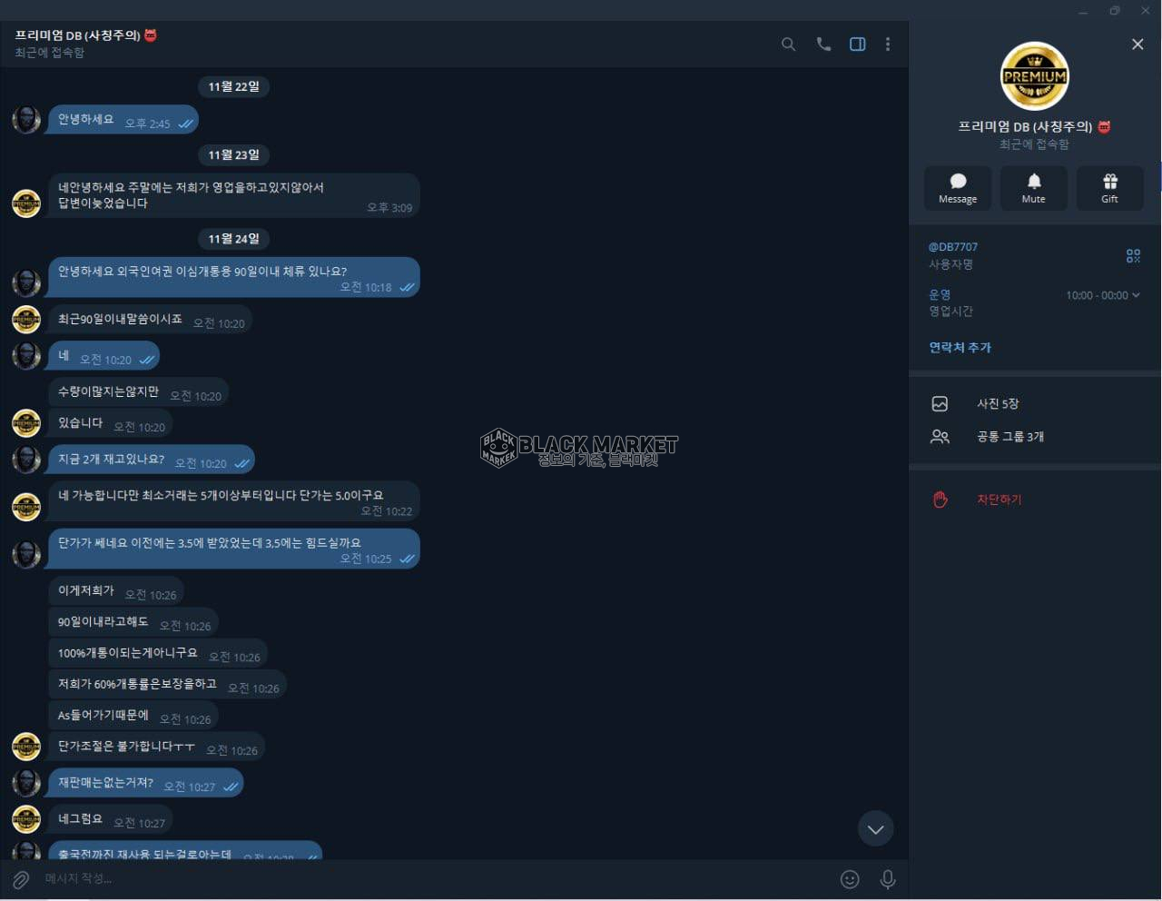 ⚠️ 블랙마켓 - '프리미엄 DB'의 이전 사기 이력 조회(11월 11일)