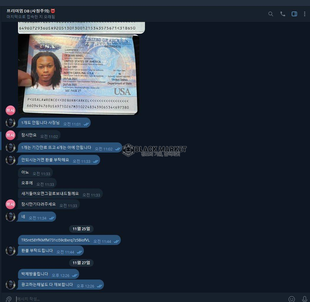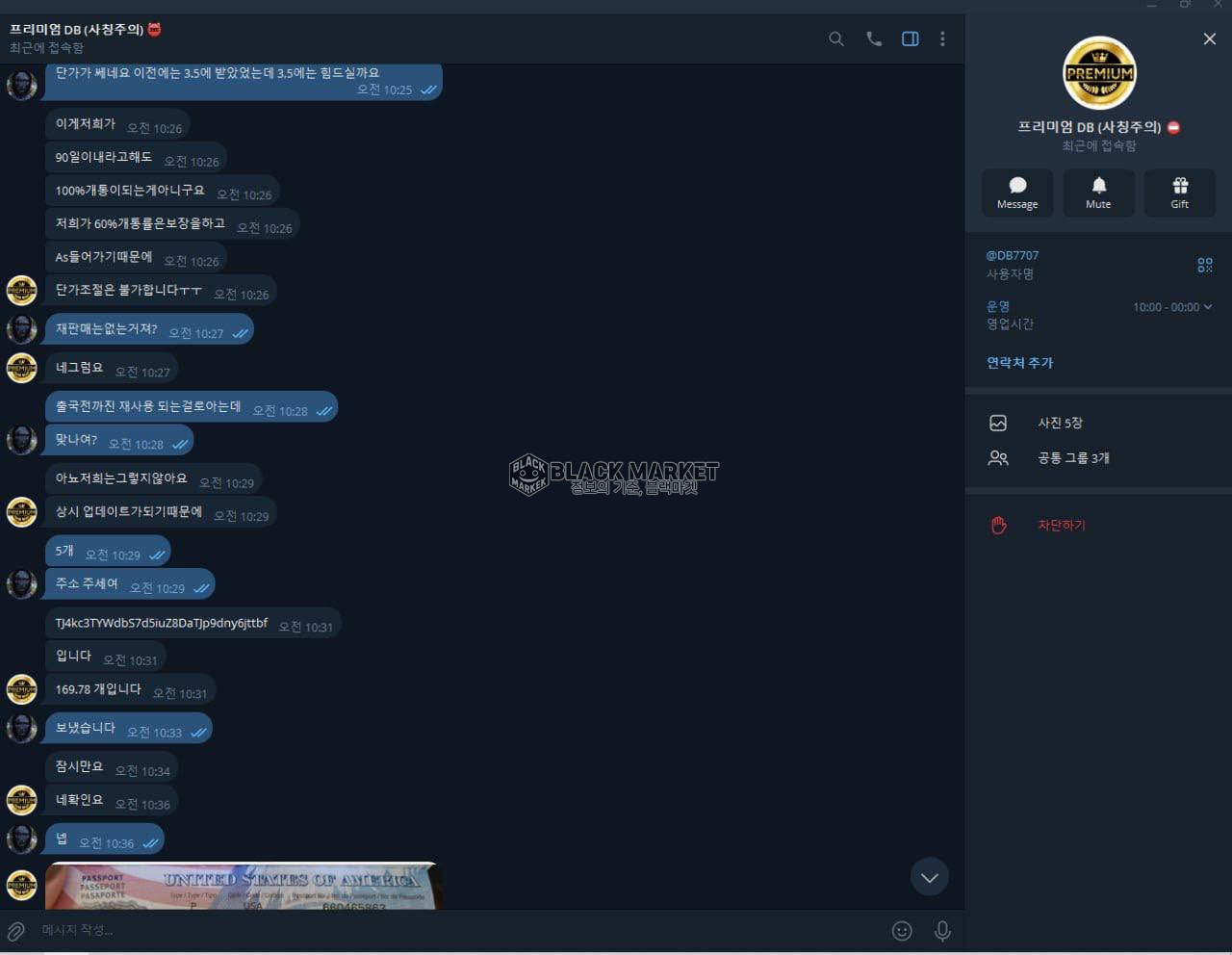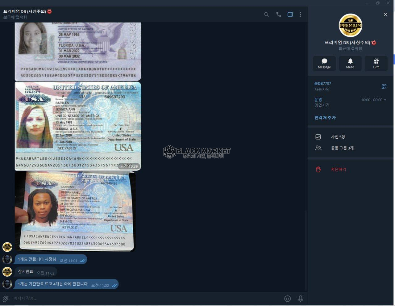 - 텔레그램 기반 DB 판매, 여권 정보 판매는 **99% 사기**