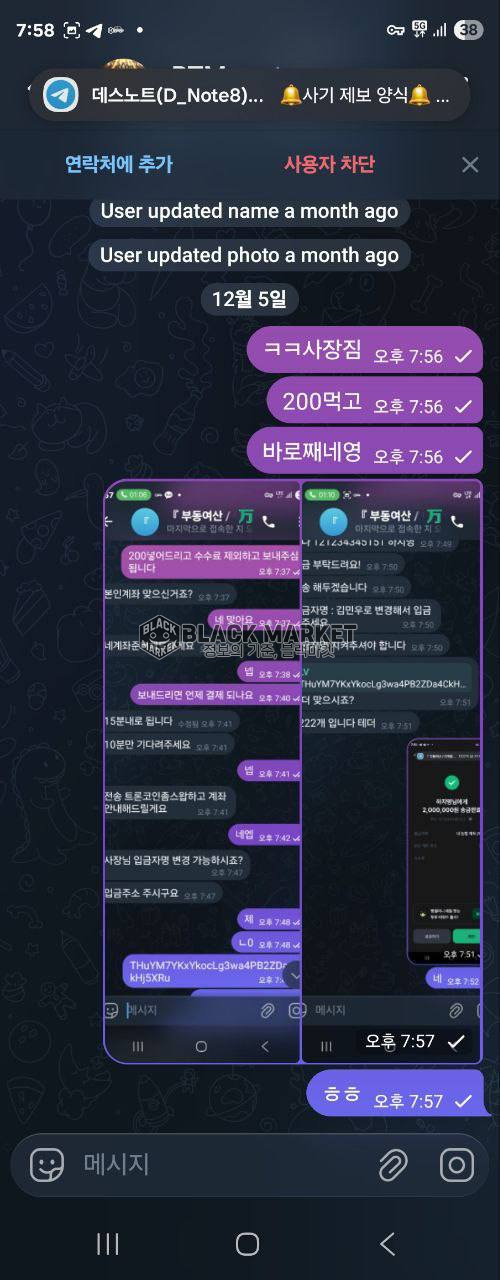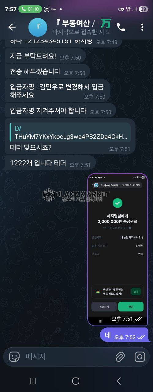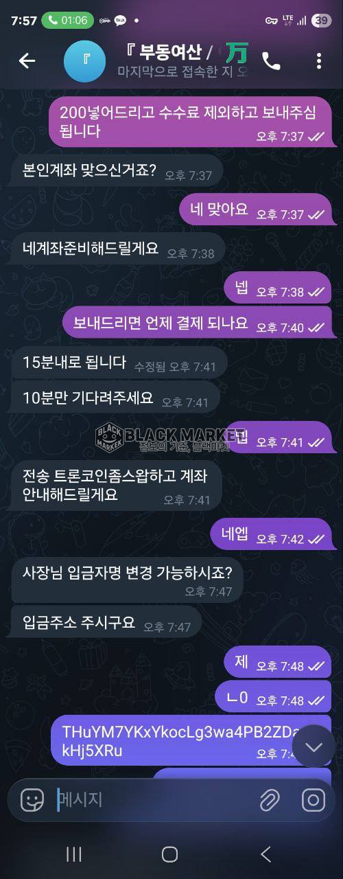 - BTM 텔레그램 채널 운영자의 소개로 『부동여산 / 万』 계정과 거래 진행