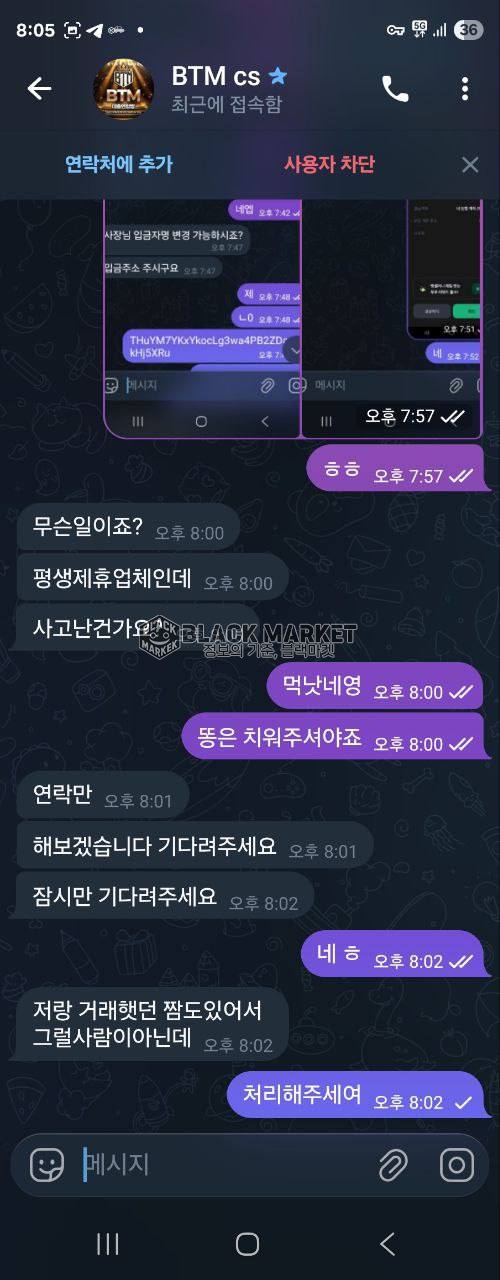 🔹 [사기 제보] BTM 채널 연계 먹튀 피해