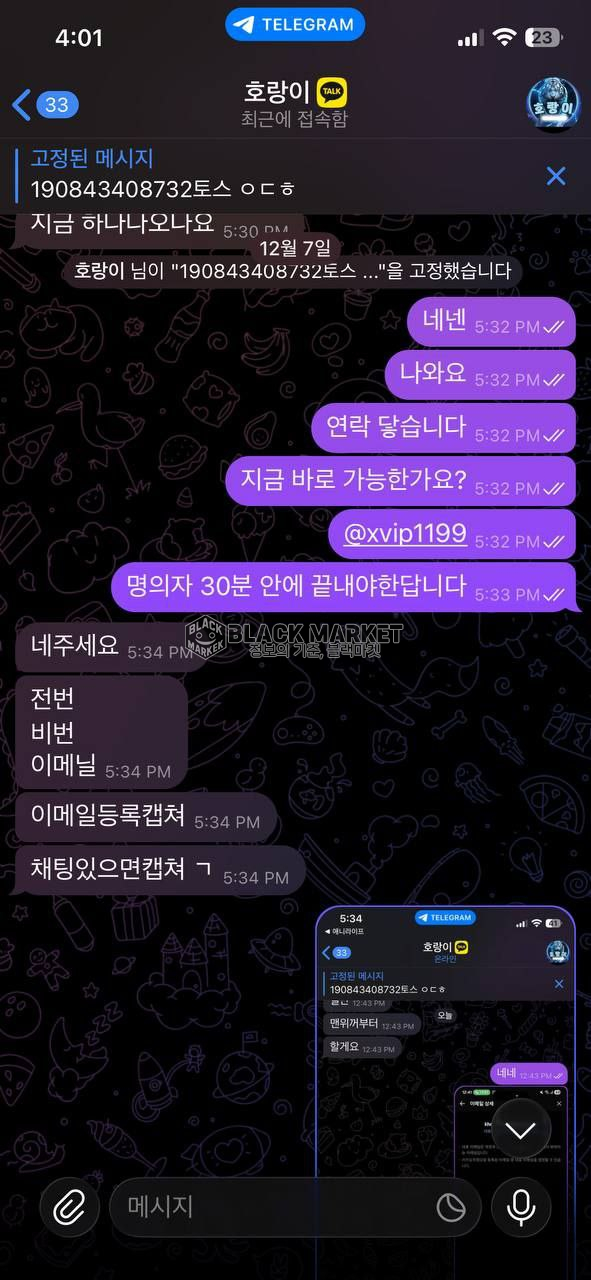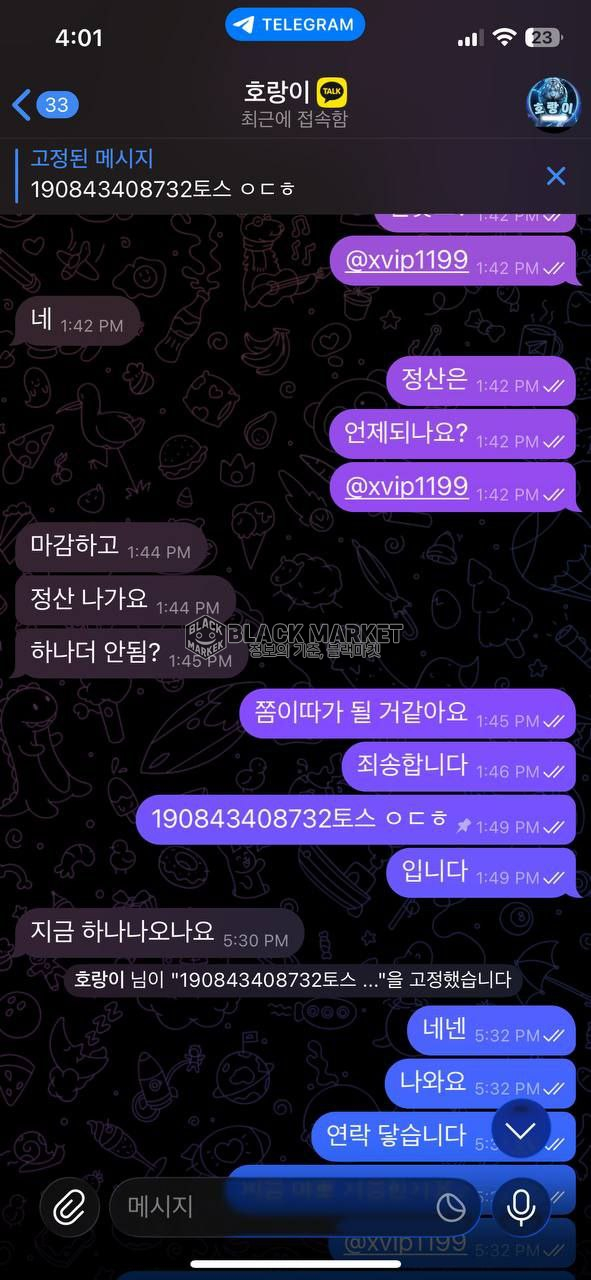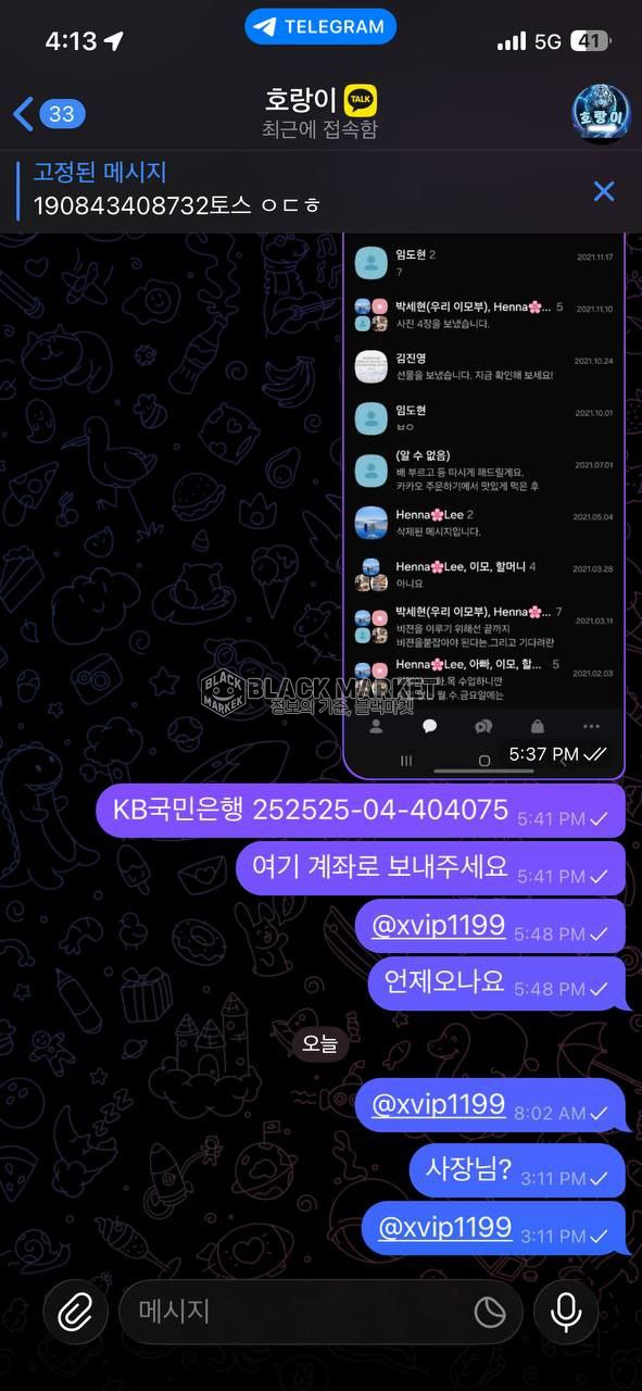 [명의&계정] 카톡 실계 매입 정산 먹튀 - 호랑이 (누적 3회)