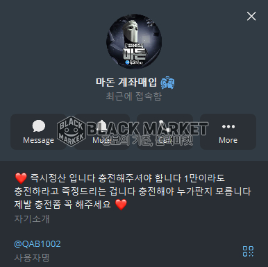 블랙마켓 제휴 협업하는곳들은 계좌 안받습니다 문의 일체 하지마세요.