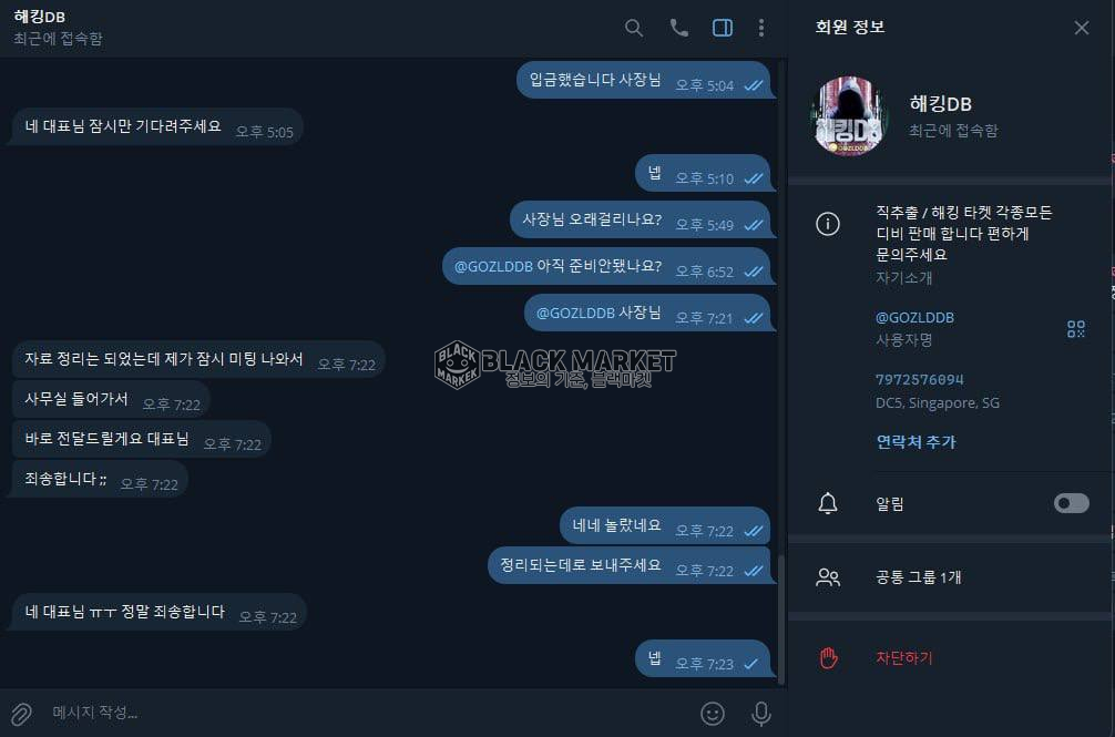 텔레그램 이름: 해킹DB