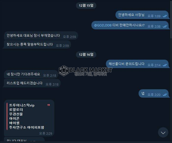 소개 문구: 직추출 해킹 타겟 각종모든 디비 판매 합니다 편하게 문의주세요