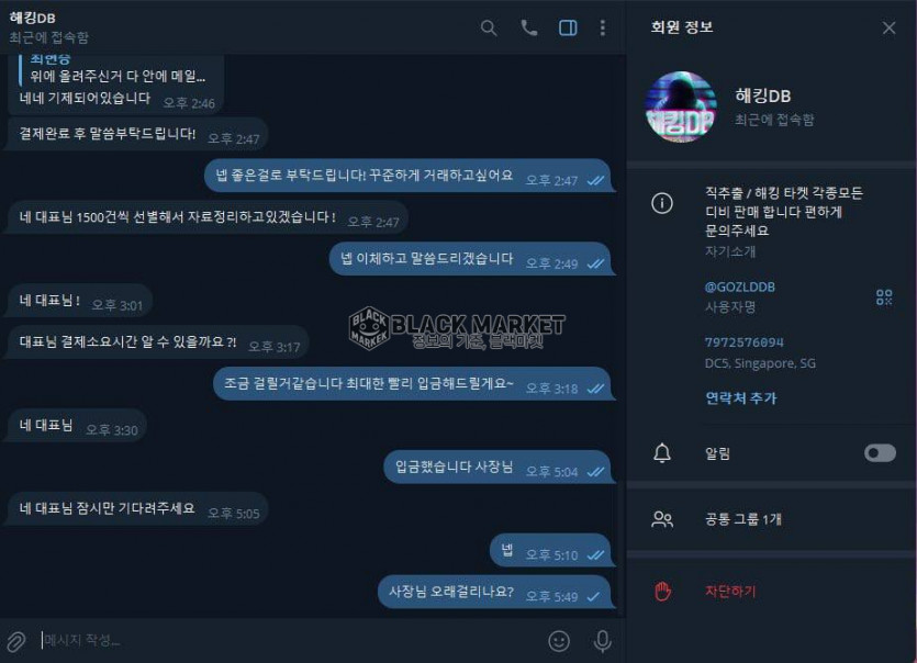해킹 DB, 디비 판매를 내세우며 선입금을 요구하는 계정 주의