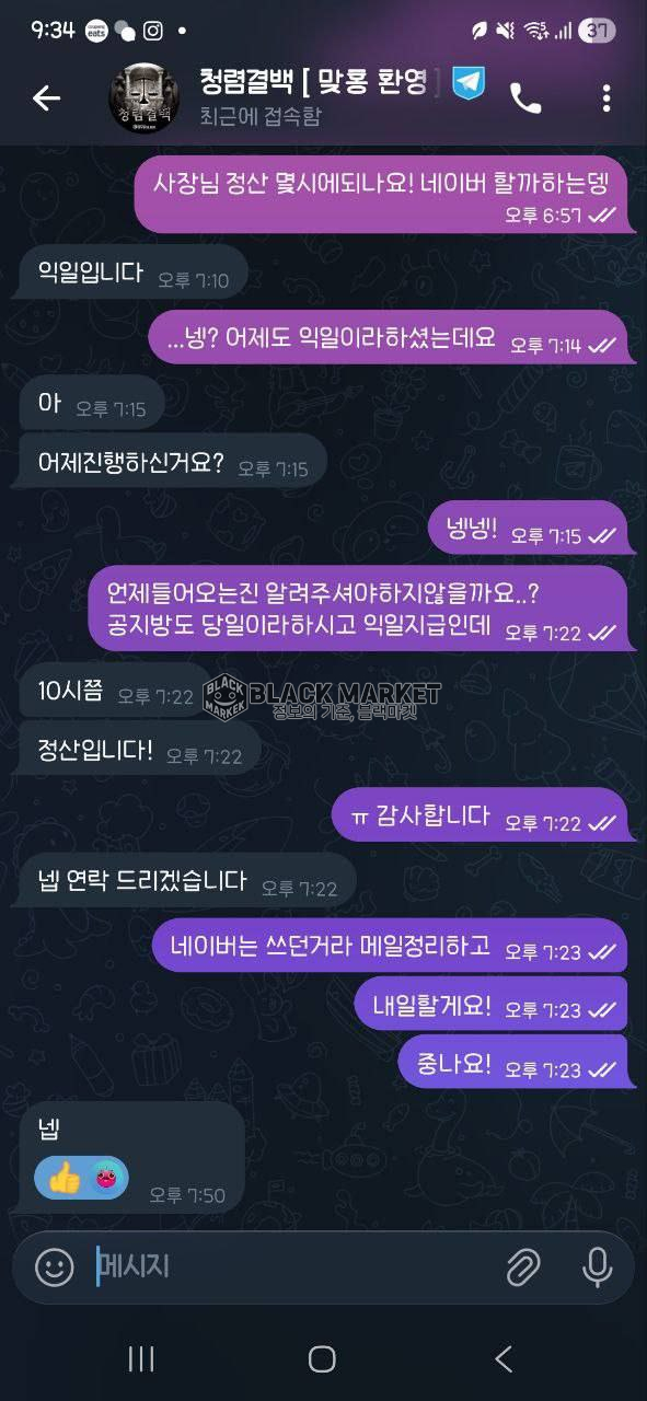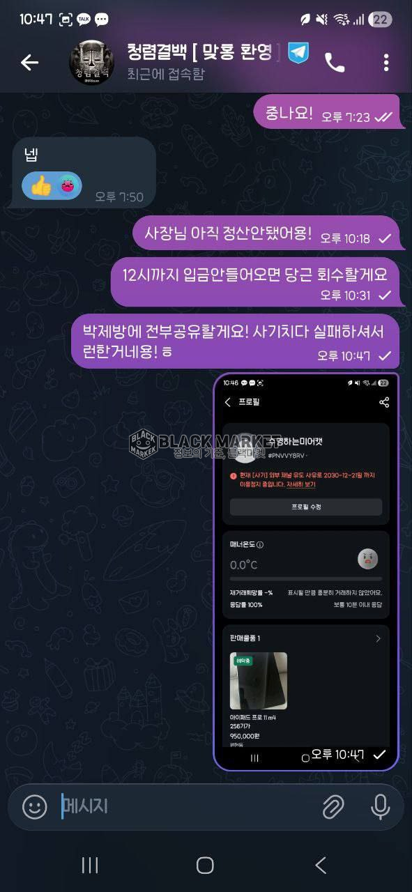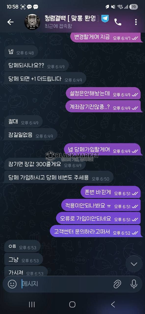 - 텔레그램 채널: 청렴결백 인증 매입