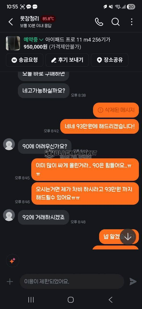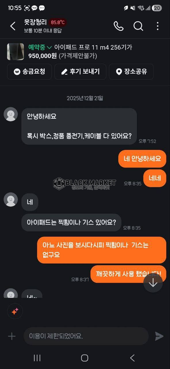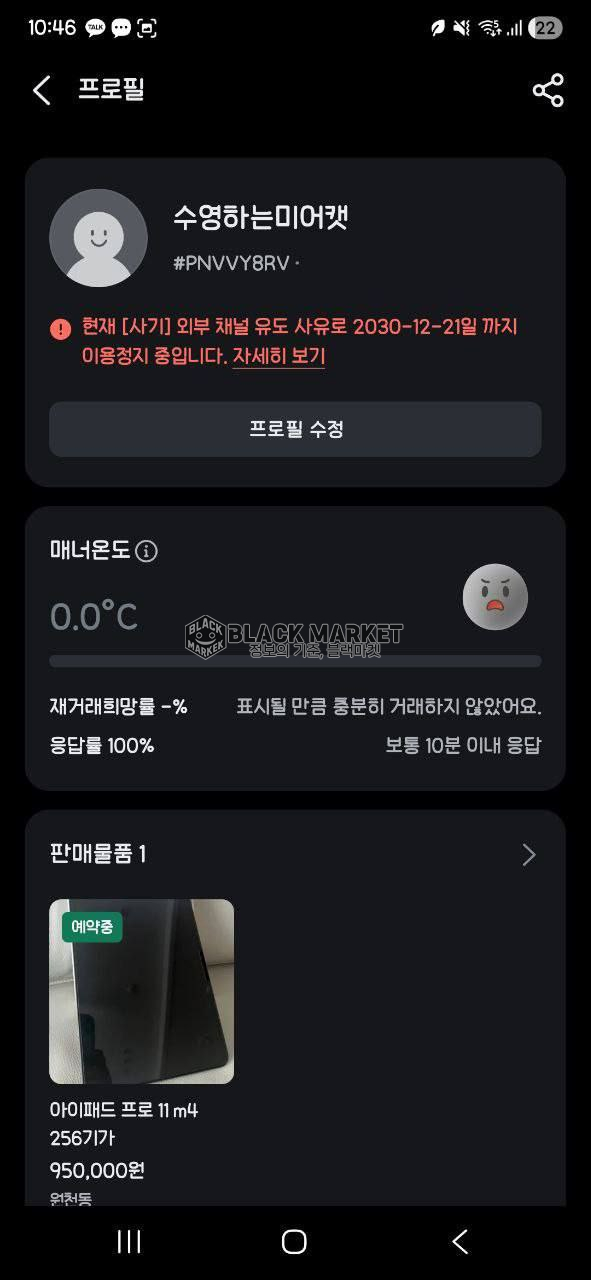 - 타 플랫폼 유도 시도 후 이용 정지 정황 확인