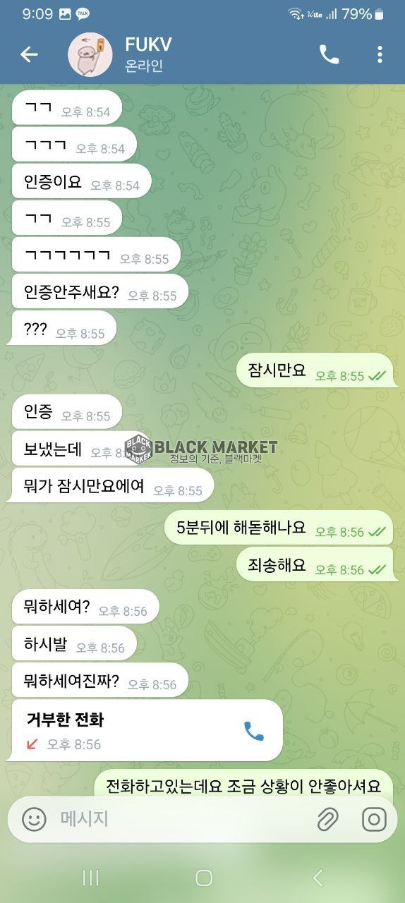 - 통화 중이라 인증이 안 된다며 인증번호를 다시 보내달라고 요구