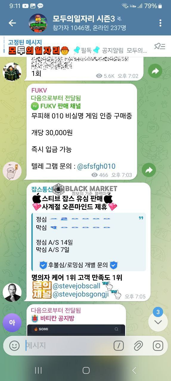- 텔레그램 채널에서 게임 인증 구매 홍보 글을 보고 연락