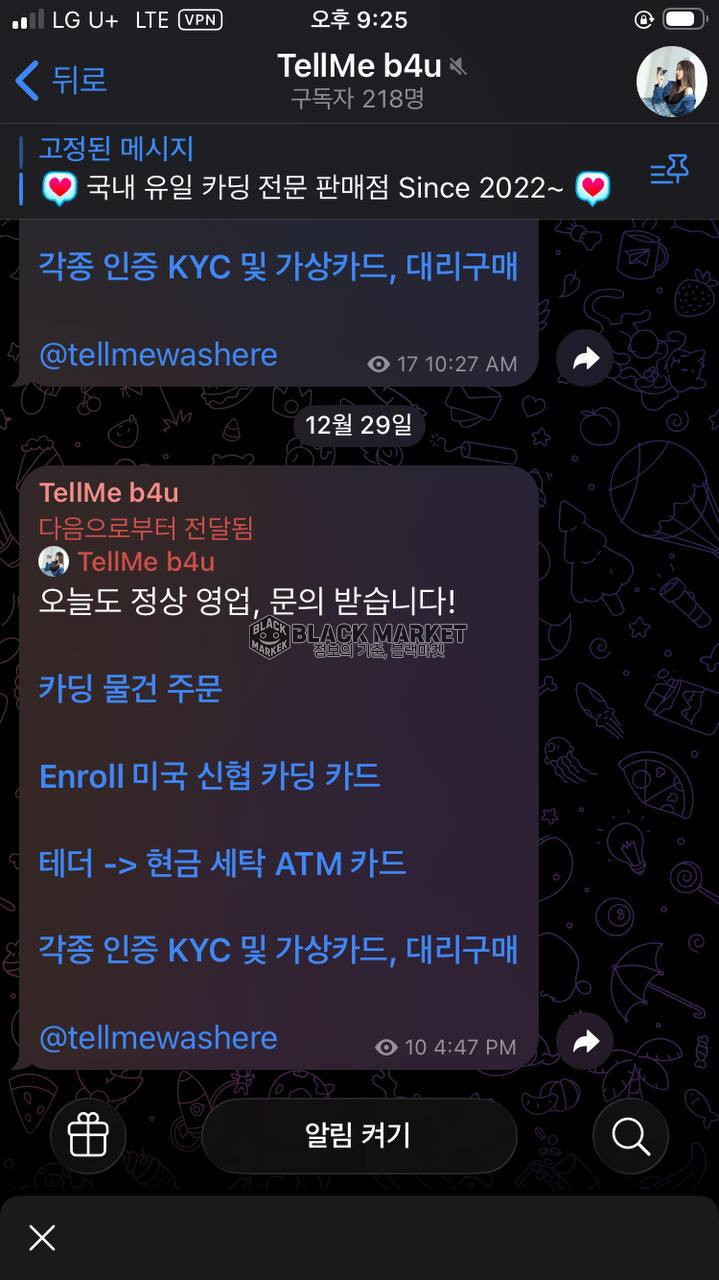- 홍보 내용: 국내 유일 카딩 전문 판매점, KYC 인증, 가상카드, 대리구매