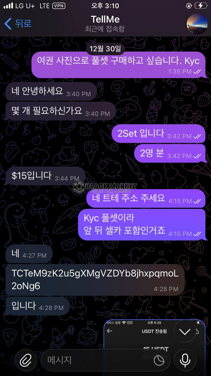 [명의&계정] 카딩·KYC 셋 판매 사기 - TellMe (누적 2회)