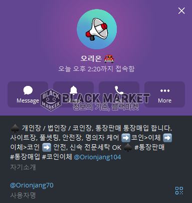 - 자기소개 문구: 개인장, 법인장, 급이장, 투자장매 통장매 임대 / 사이트장, 콜팀, 안전장, 명의자 케어 / 코인 이체 OK