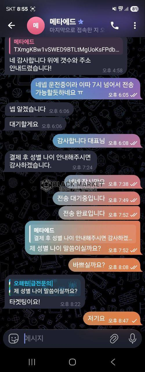 USDT 테더 송금 완료 직후 추가 개인정보 요구
