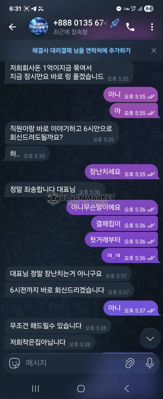 결국 텔레그램 탈퇴 및 계정 삭제로 연락 두절됨.