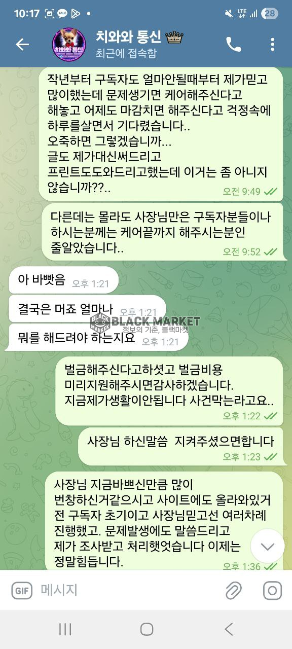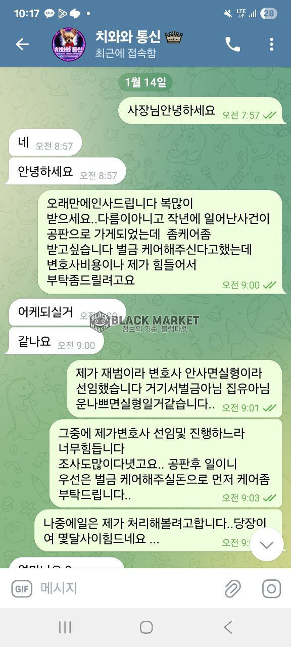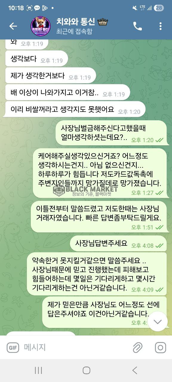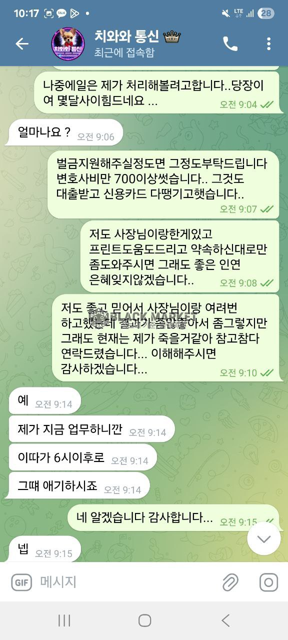 대화 회피, 최종적으로 텔레그램 차단으로 연락 두절됨.
