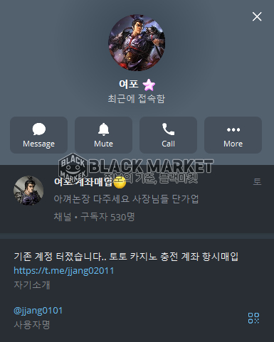 - 채널 설명: 기존 계정 더줍니다. 토토·카지노 충전 계좌 상시매입