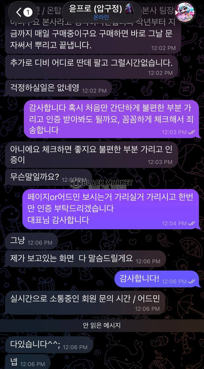 - 첫 거래라며 신뢰 확보를 위해 어드민 인증까지 진행