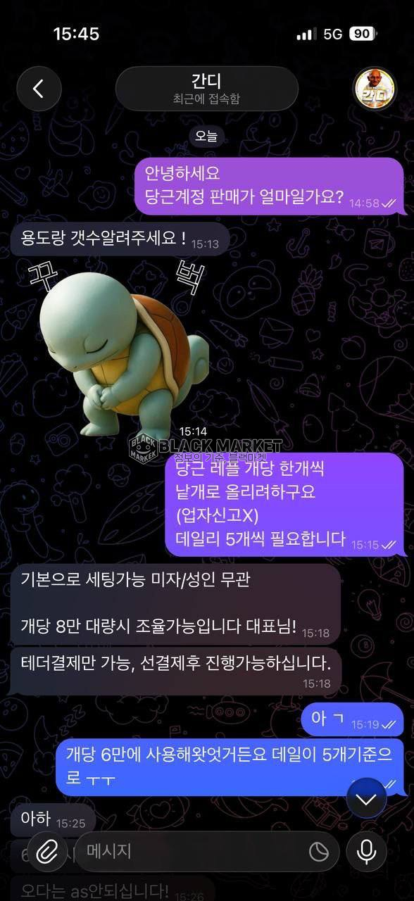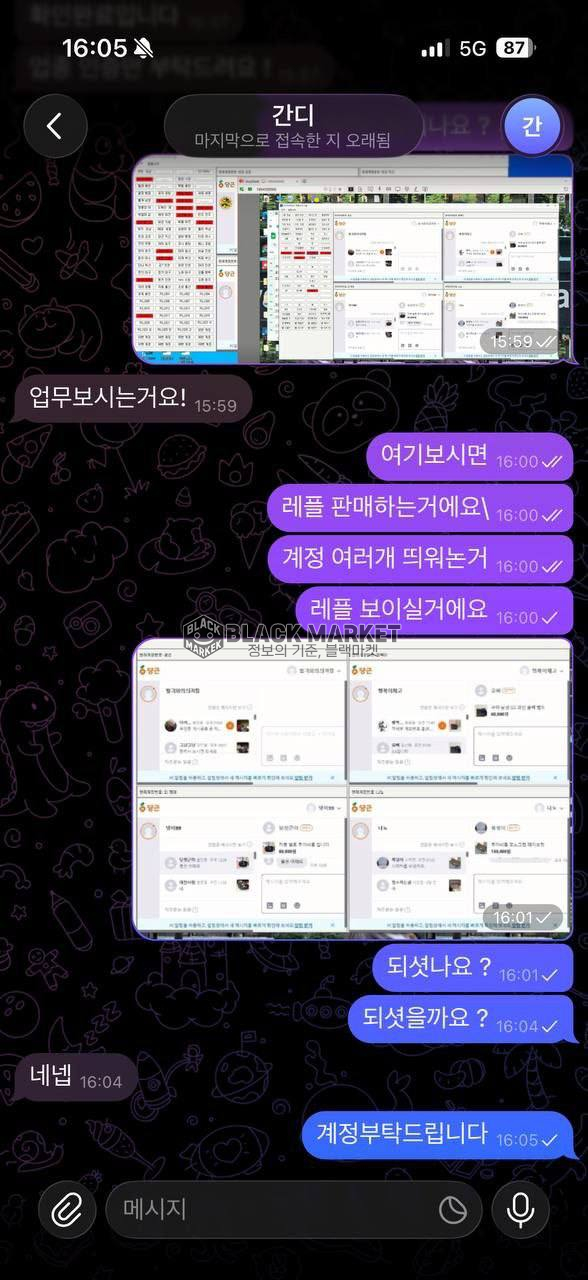 당근마켓 계정 구매를 위해 텔레그램으로 접촉.