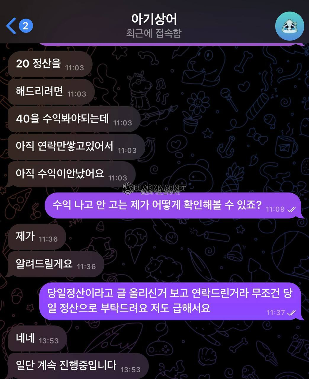 • 수익 발생 후 정산해준다며 시간 끌기