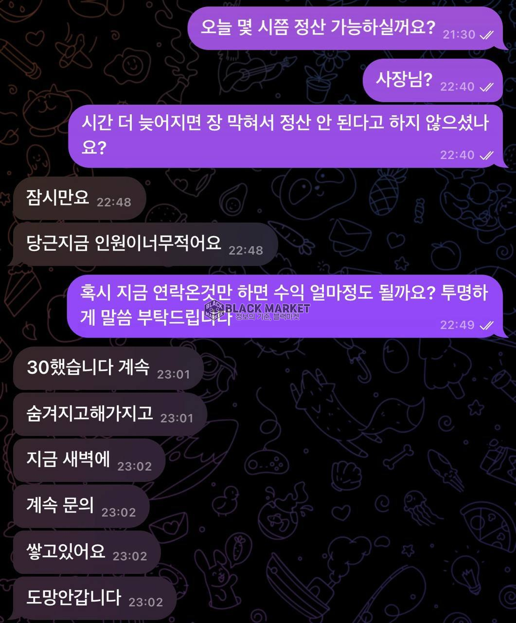 • 장 정산 시간 지연 및 수익 미발생 핑계