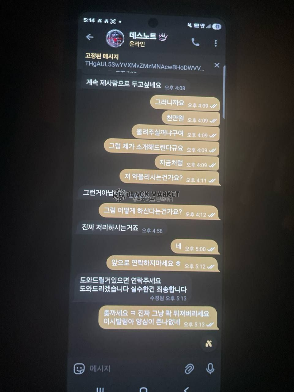 - 데스노트방에서 1,000만 원 입금 요구 및 토스 증빙 후 연락