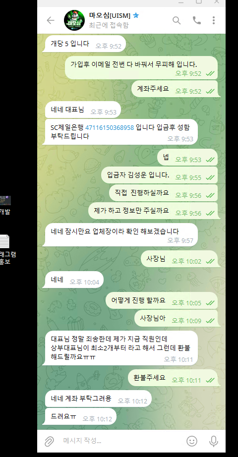 - 피해 발생 후 텔레그램 계정을 숨기고 새 아이디를 생성하여 영업을 이어가는 정황 확인됨.
