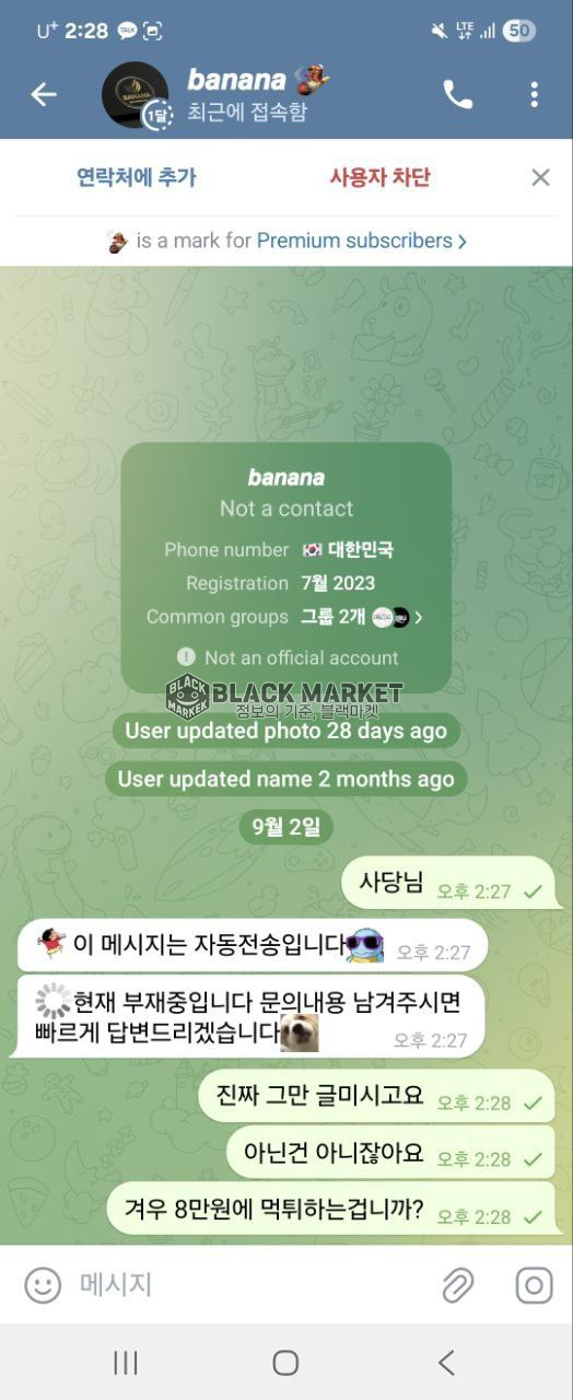@bananakorea 및 유사 계정과의 거래는 주의 필요.