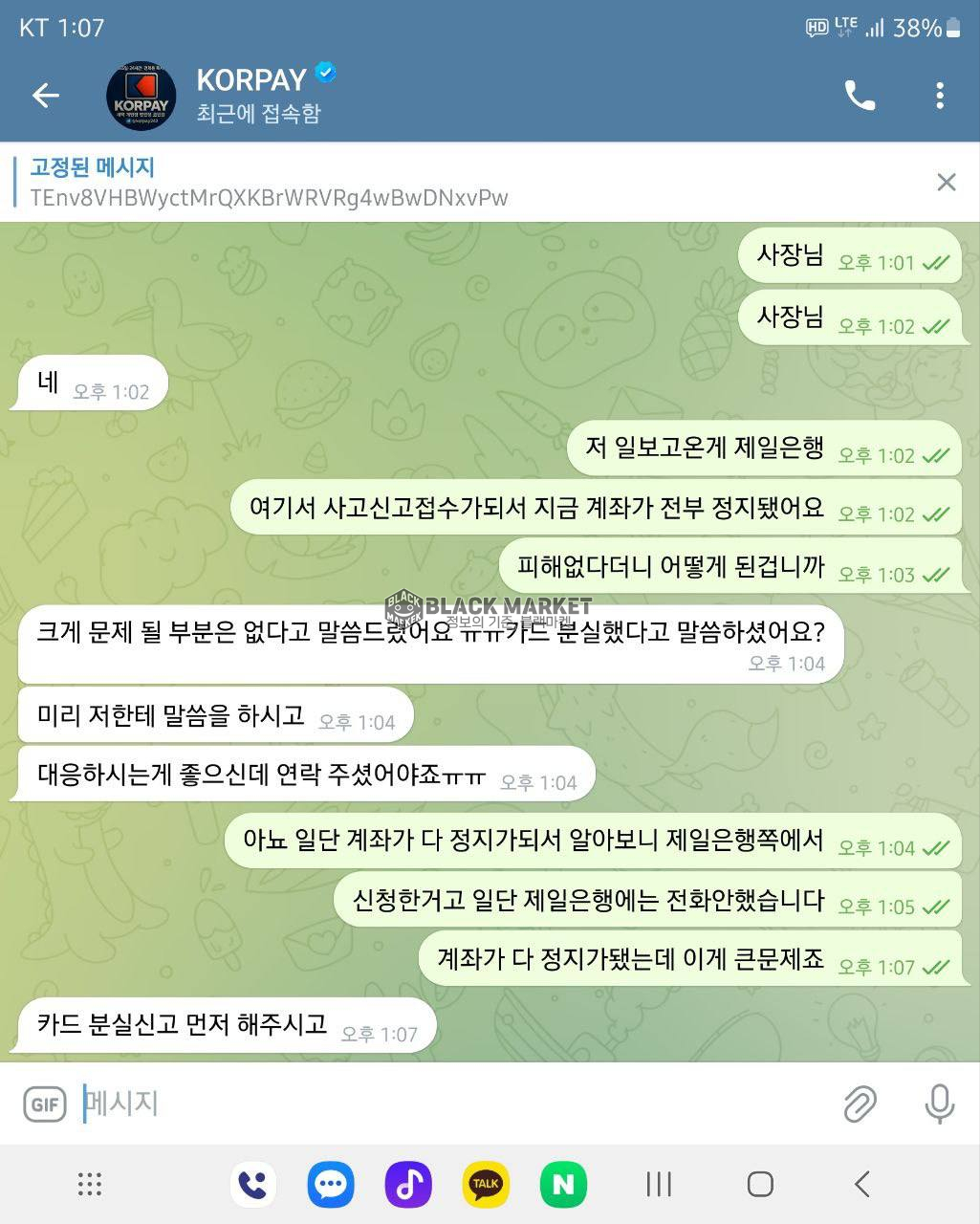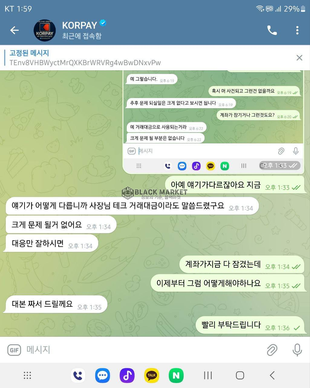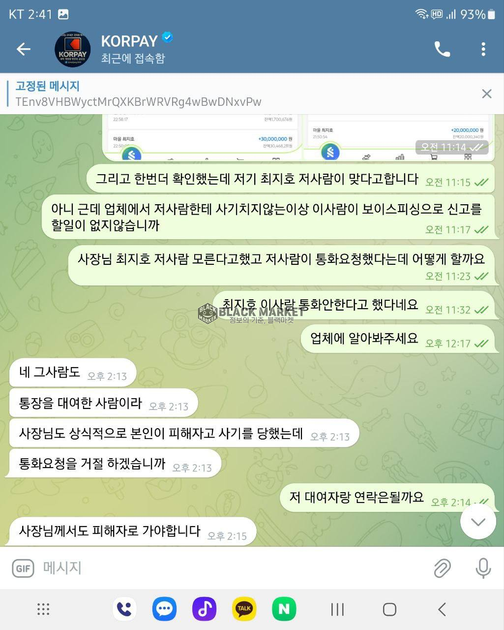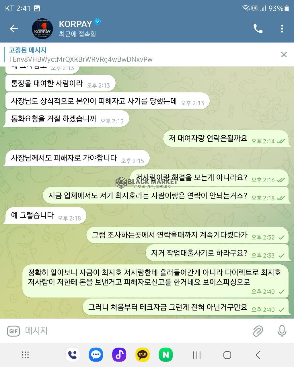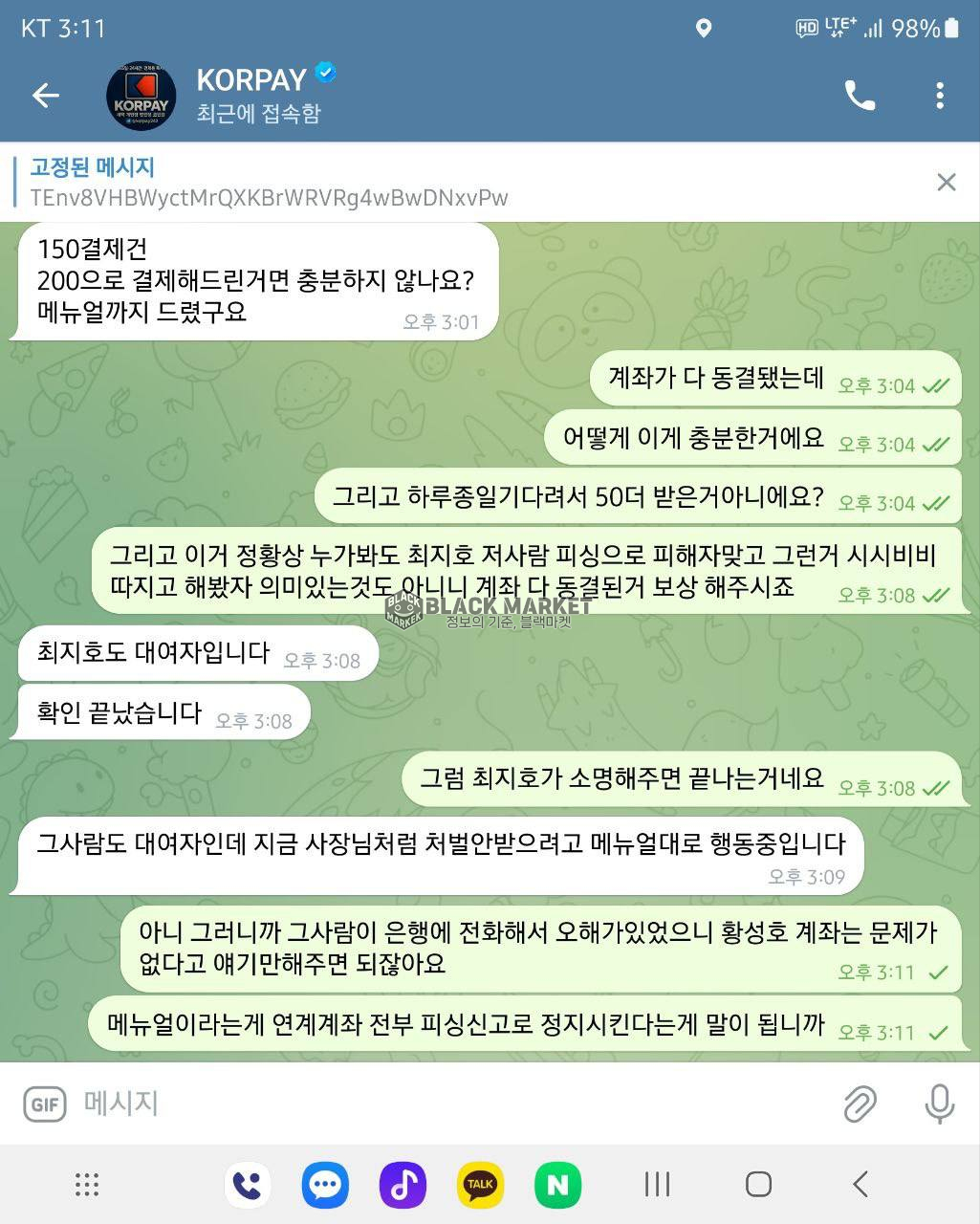 ⚠️ 블랙마켓 - 'KORPAY'의 이전 사기 이력 조회(6월 24일)