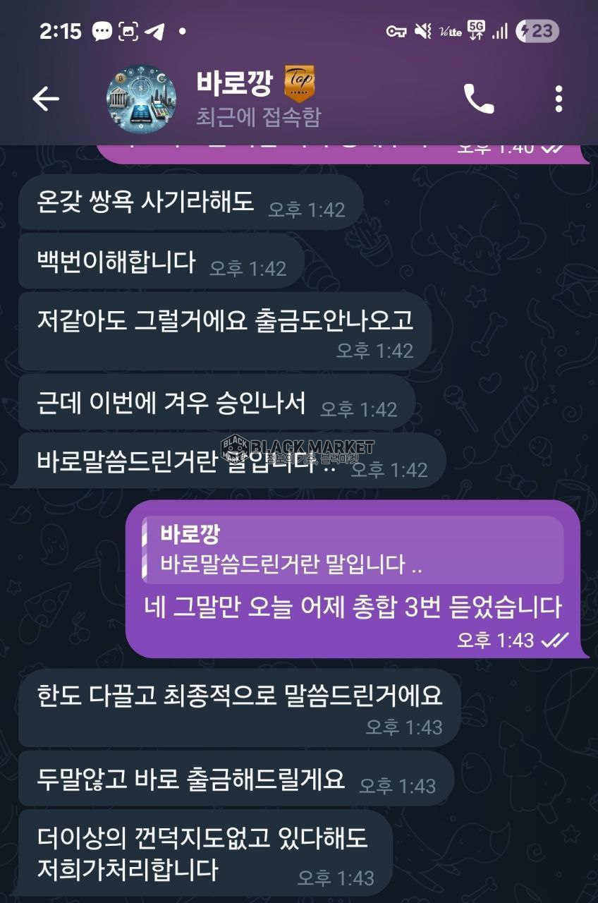 - 텔레그램 닉네임: (구)슈퍼마켓—先 > 바로깡