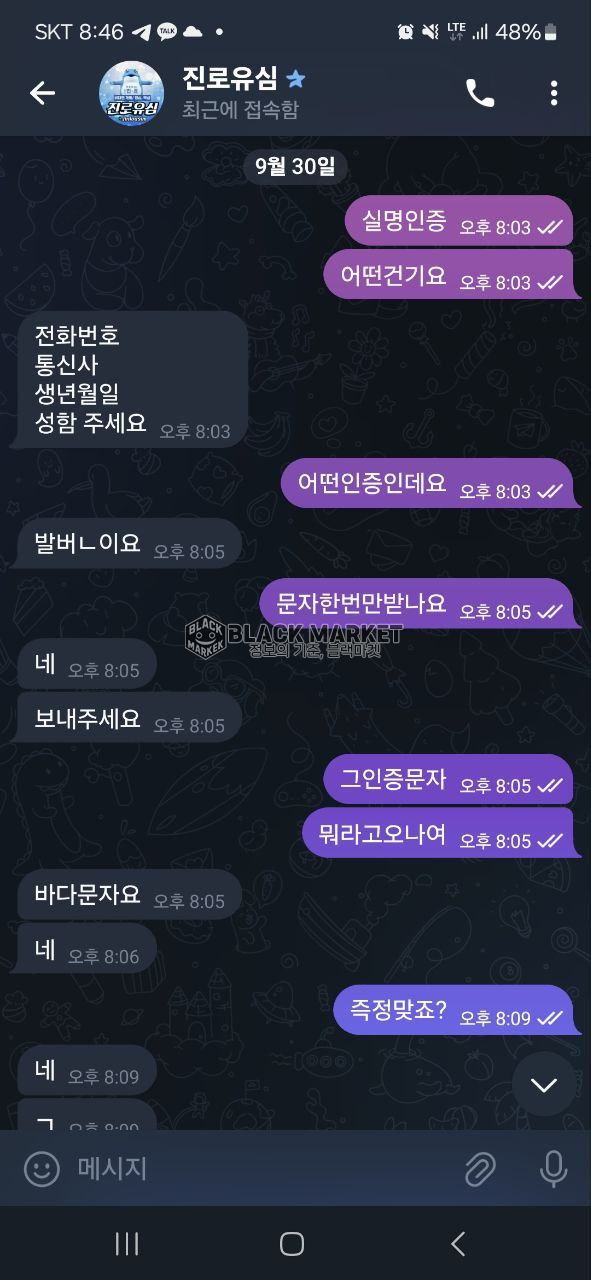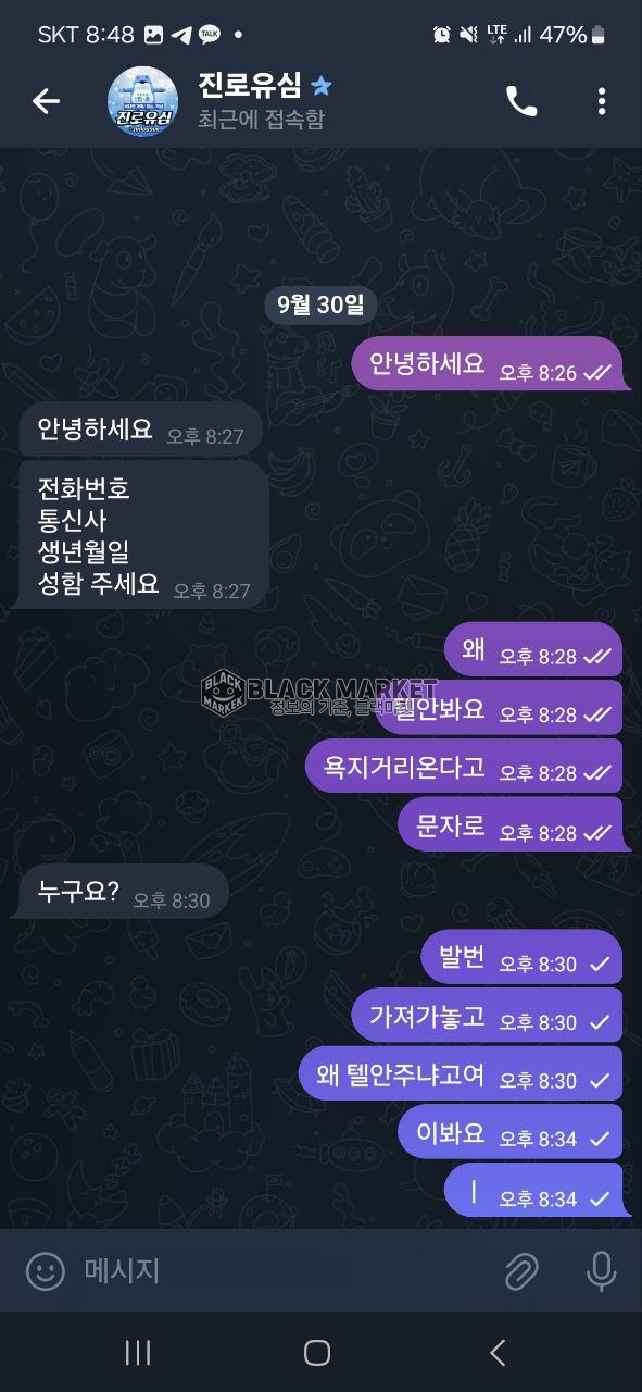 ⚠️ 블랙마켓 - '진로유심'의 이전 사기 이력 조회(9월 28일)
