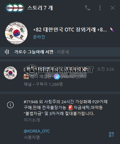 - 텔레그램 프로필: "대한민국 OTC 장외거래 코인 이체 및 대리결제"