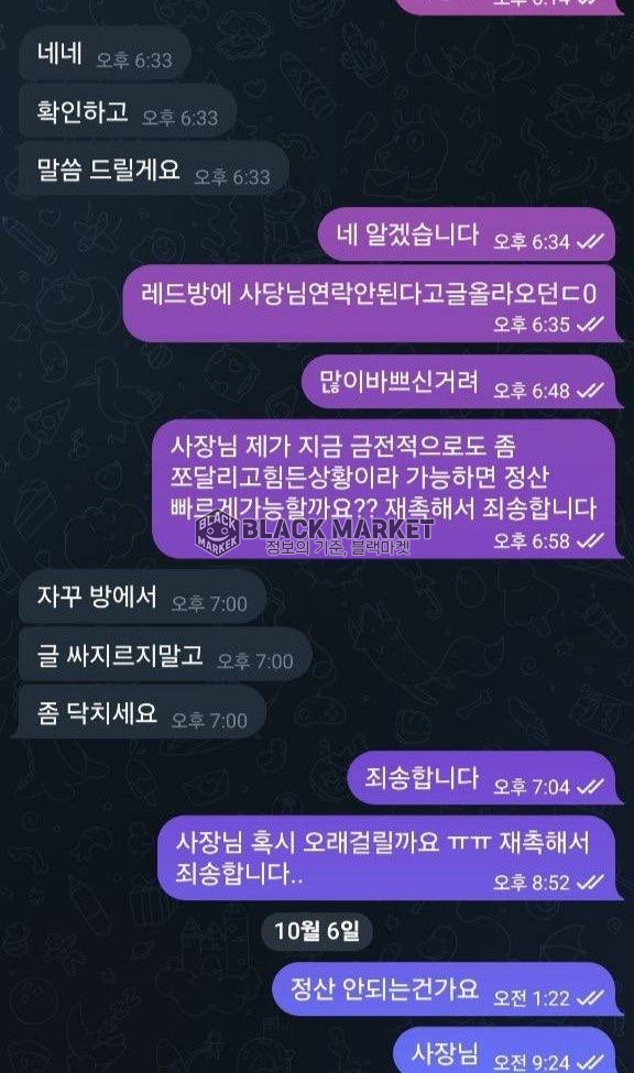 4. 피해자 긴급 요청에도 불구하고 정산 미루고 잠수