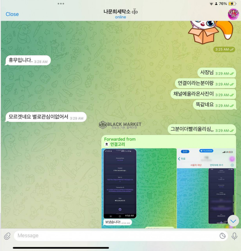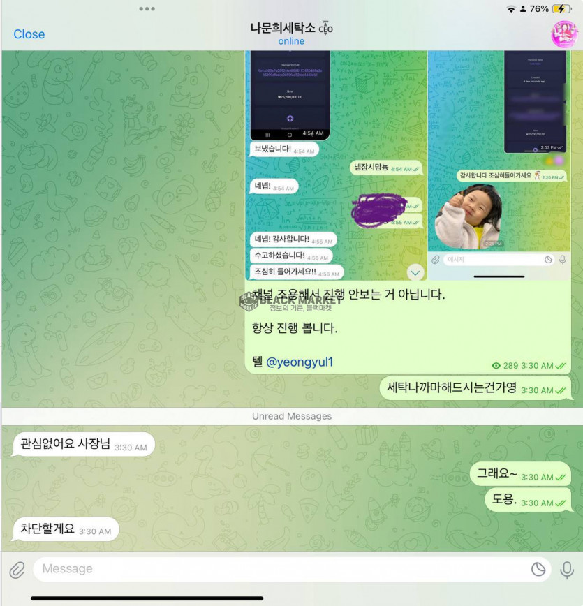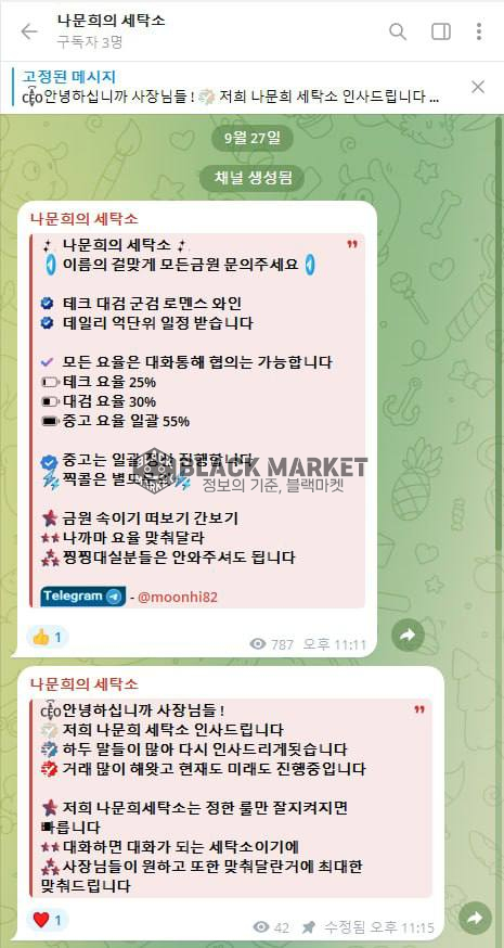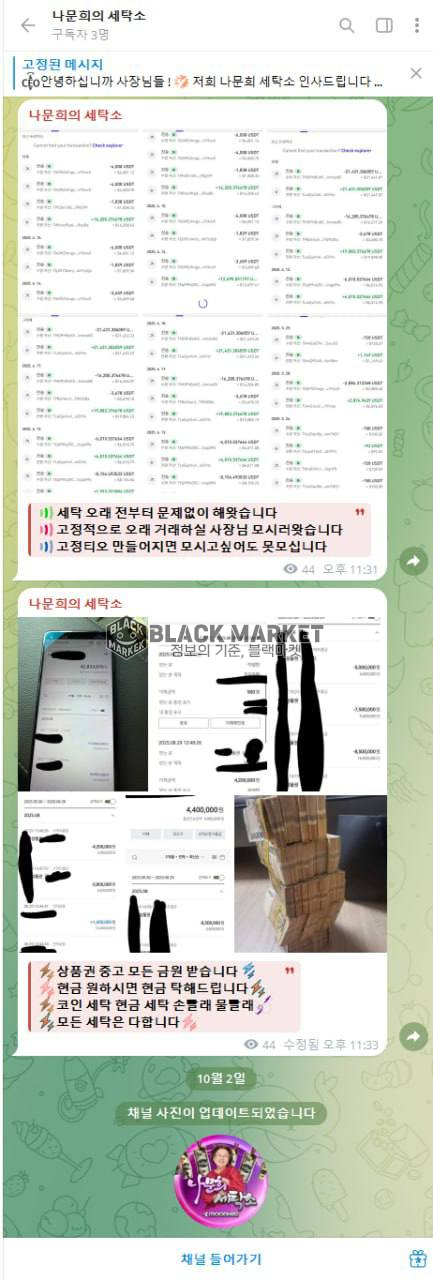 - '나문희 세탁소' 명의로 텔레그램 채널 운영