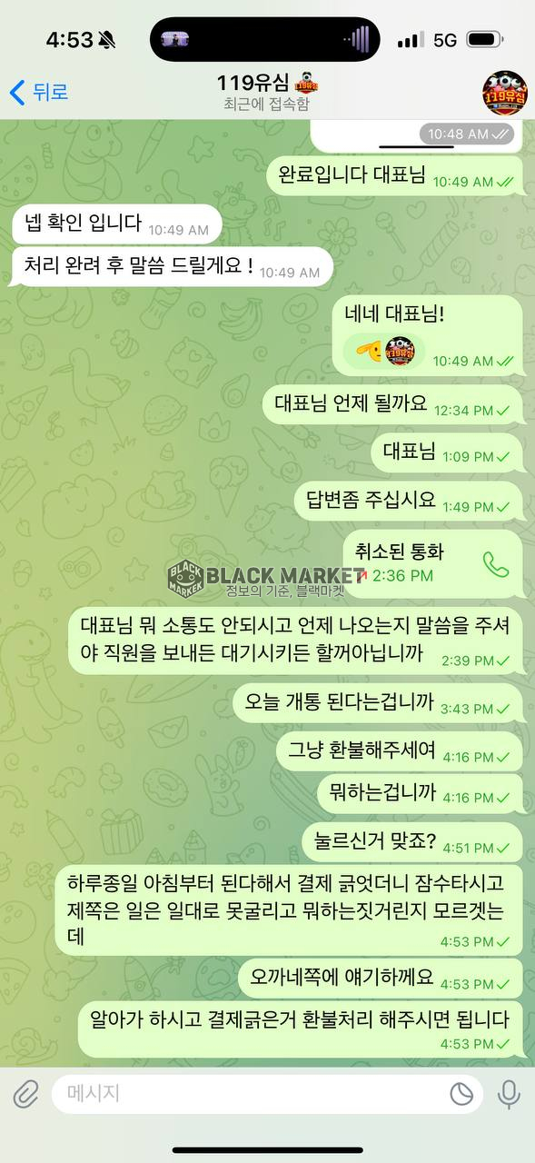 환불 안 해주냐고 물으니 차단 박고, 다른 텔레그램으로 따지니 또 차단.
