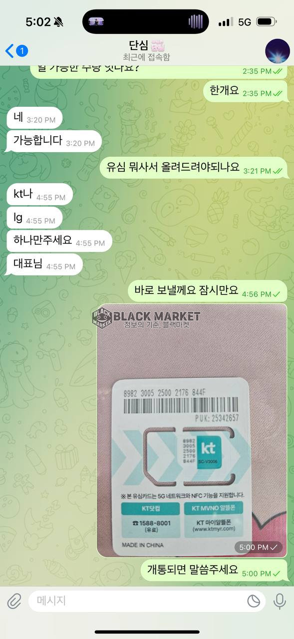 또 다른 텔레그램으로 유심 문의를 해보니 역시 결제부터 요구하는 사기꾼입니다."