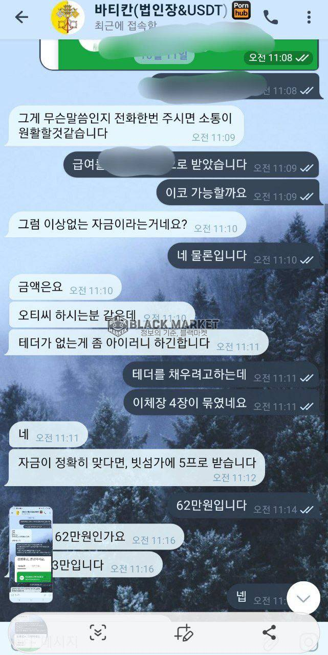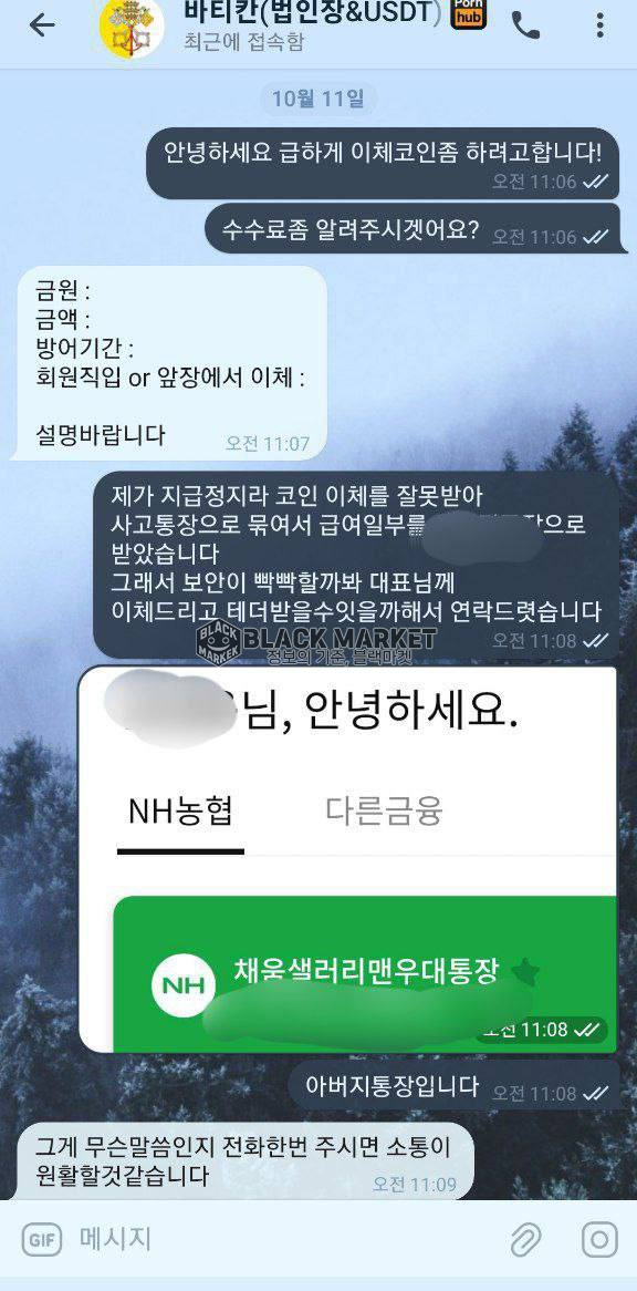 피해자는 급하게 코인 이체(USDT 환전)를 진행하기 위해 ‘바티칸(법인장&USDT)’ 계정에 문의함.