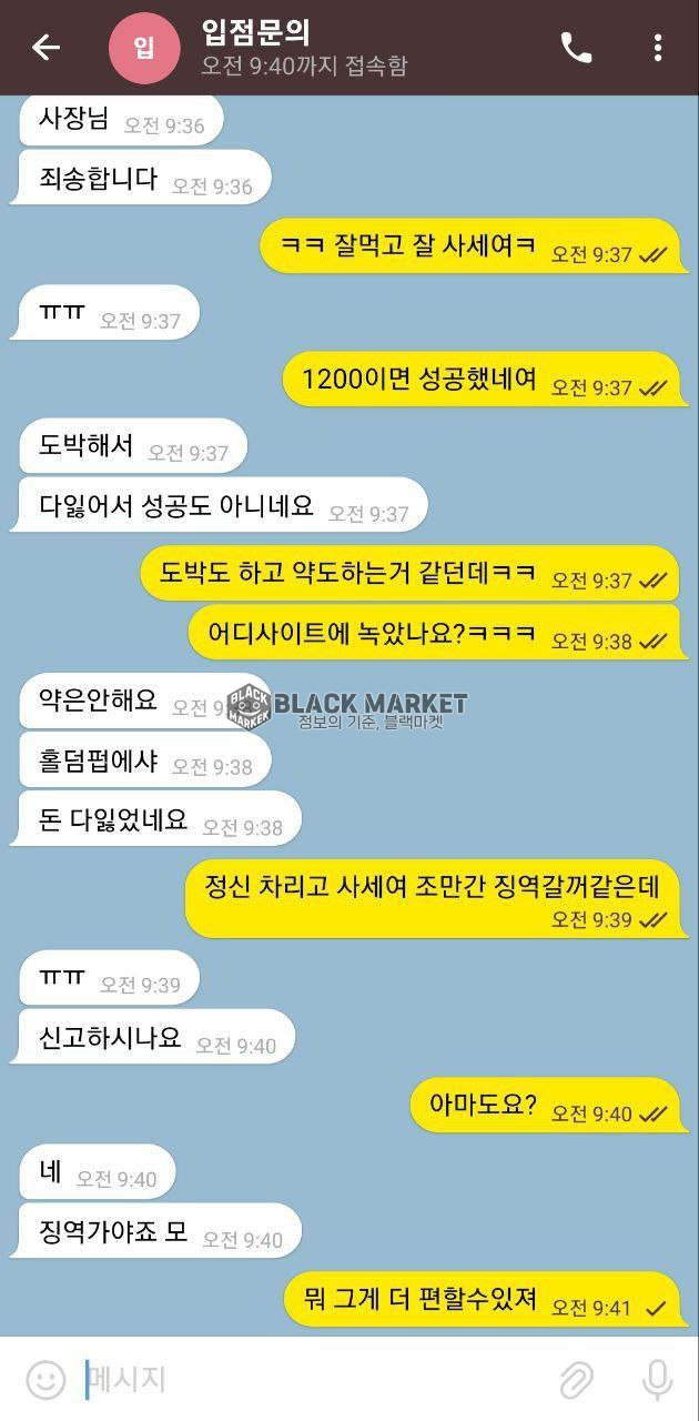 | 이후상황 | 도박으로 탕진했다며 환불 거부, 조롱 및 지속적 메시지 발송 |
