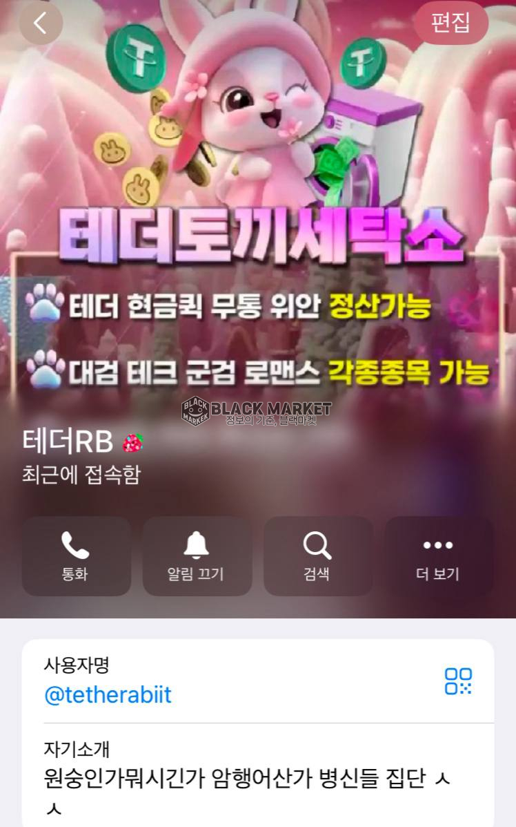 - ‘테더 현금화 가능’, ‘정산전문’, ‘인증업자’ 등 명칭 사용 계정 대부분 사기 가능성 높음