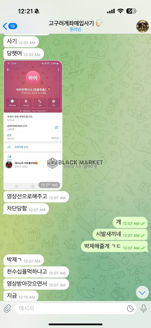 - 텔레그램 닉네임: 아이언맨010 [연중무휴]
