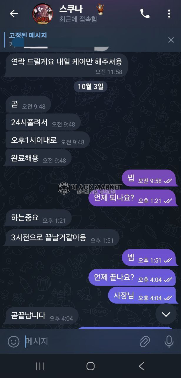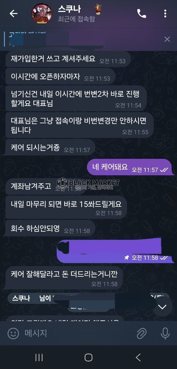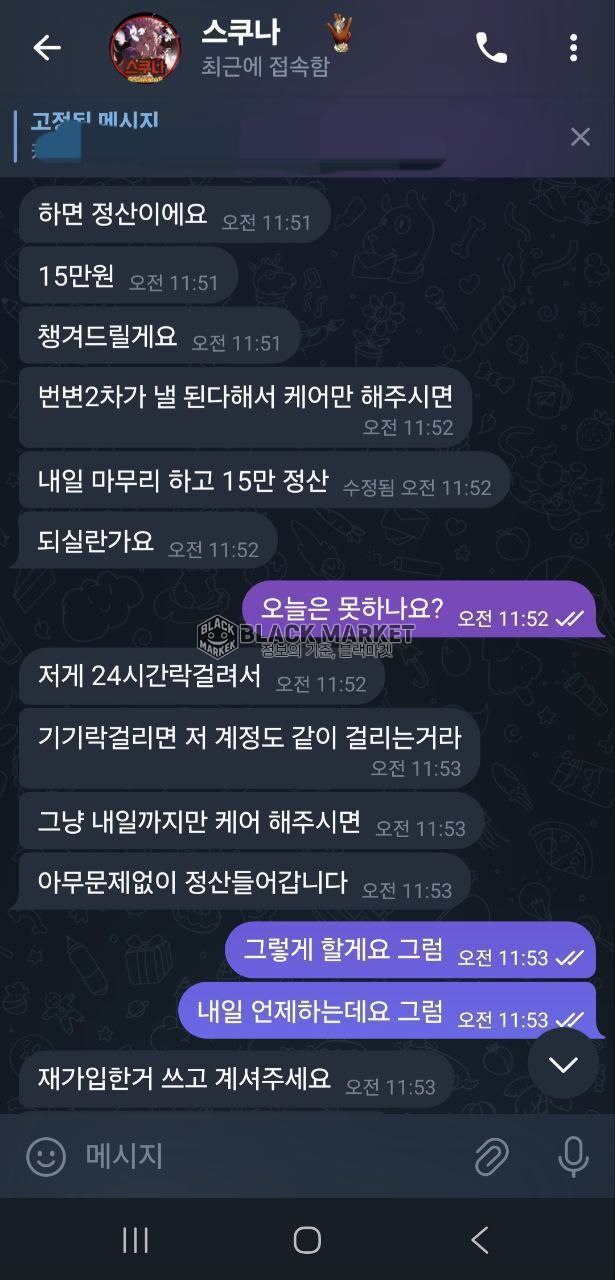 [명의&계정] 카톡 실계 정산 먹튀 - 한마 > 비비 > 스쿠나 (누적 10회)