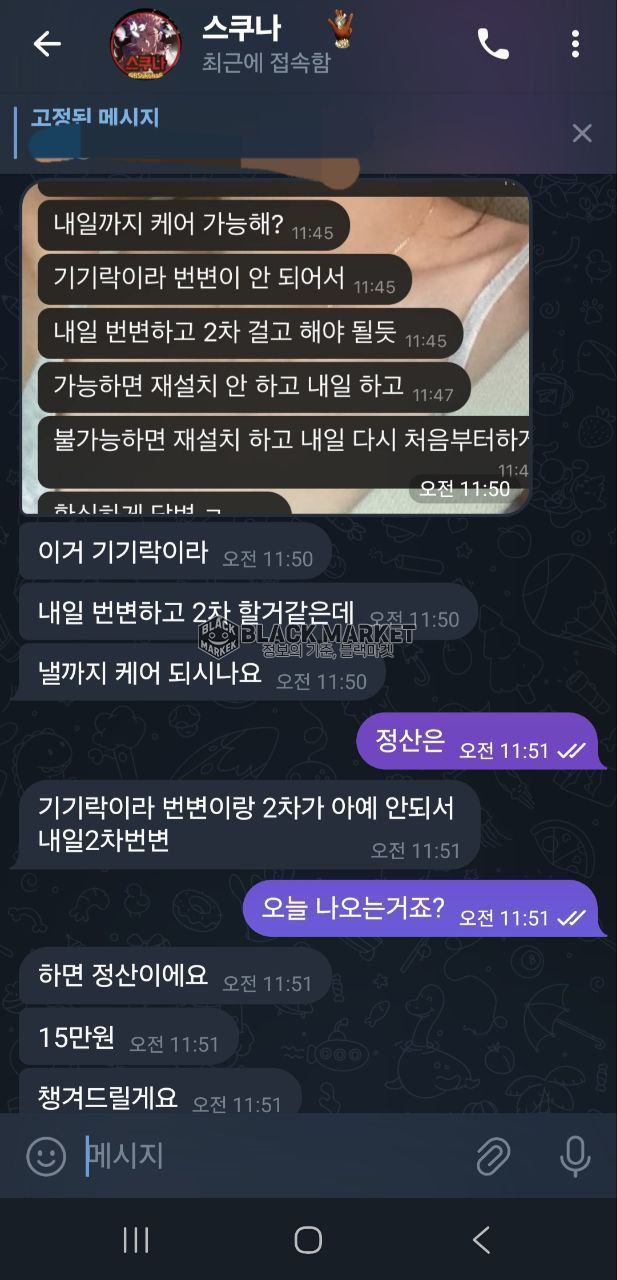 **정산은 15만원 / 다음날 오후 1시 이내 입금**을 약속함.