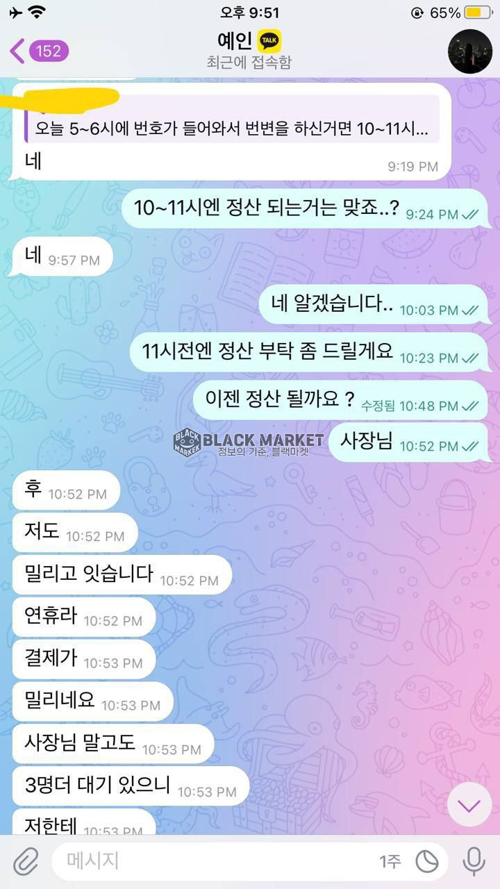 [명의&계정] 카톡 실계 매입 정산 먹튀 - 예인