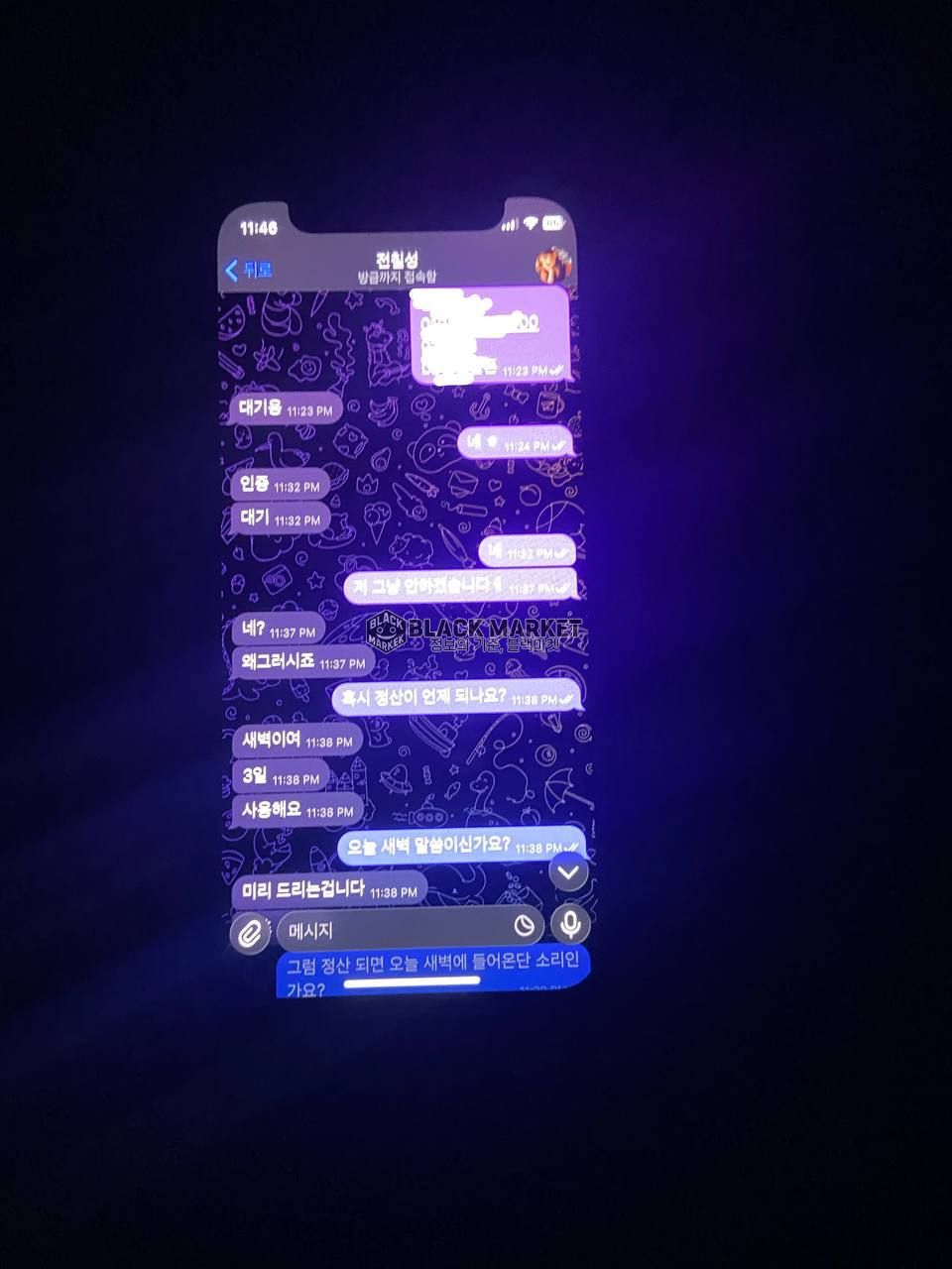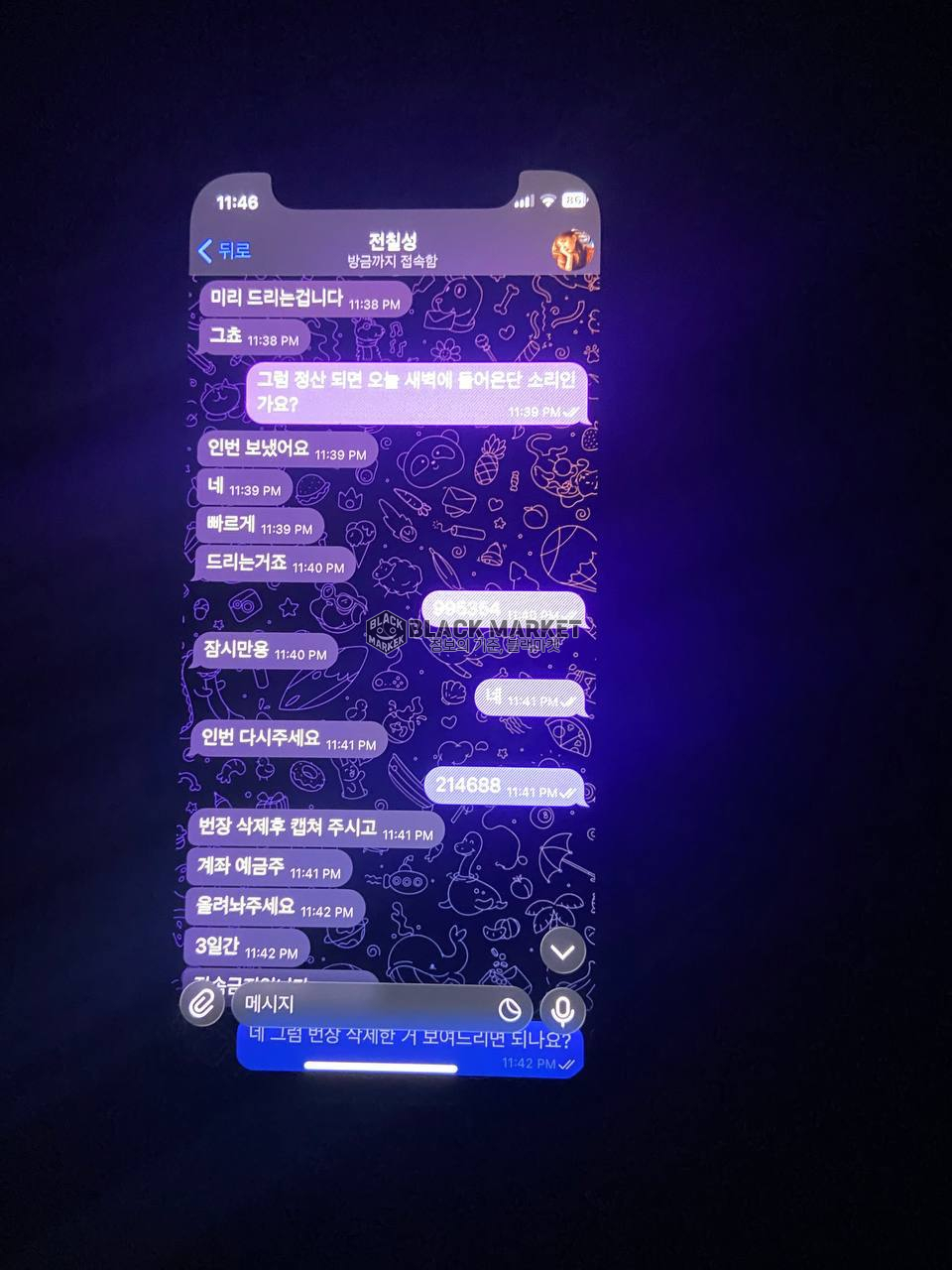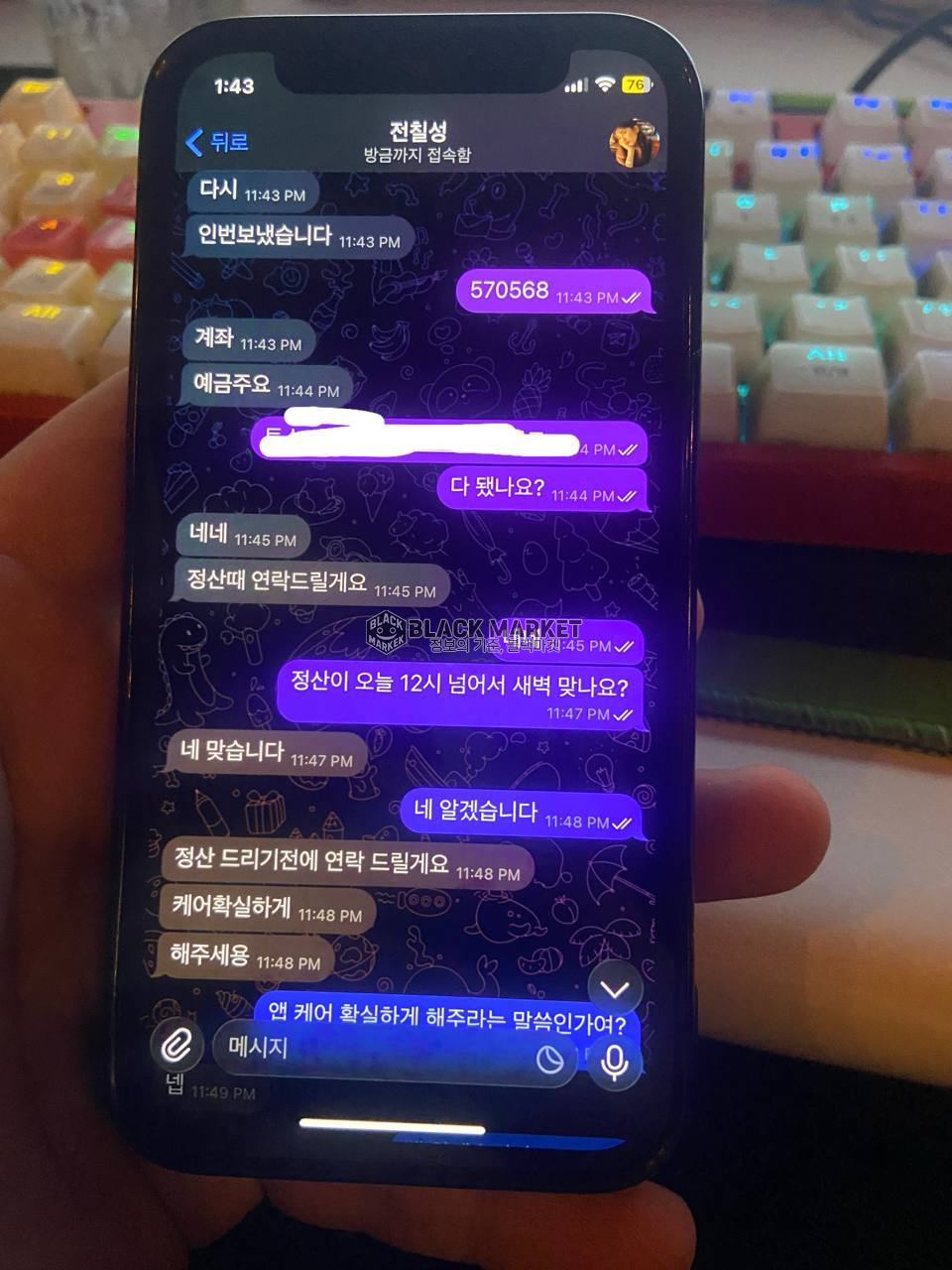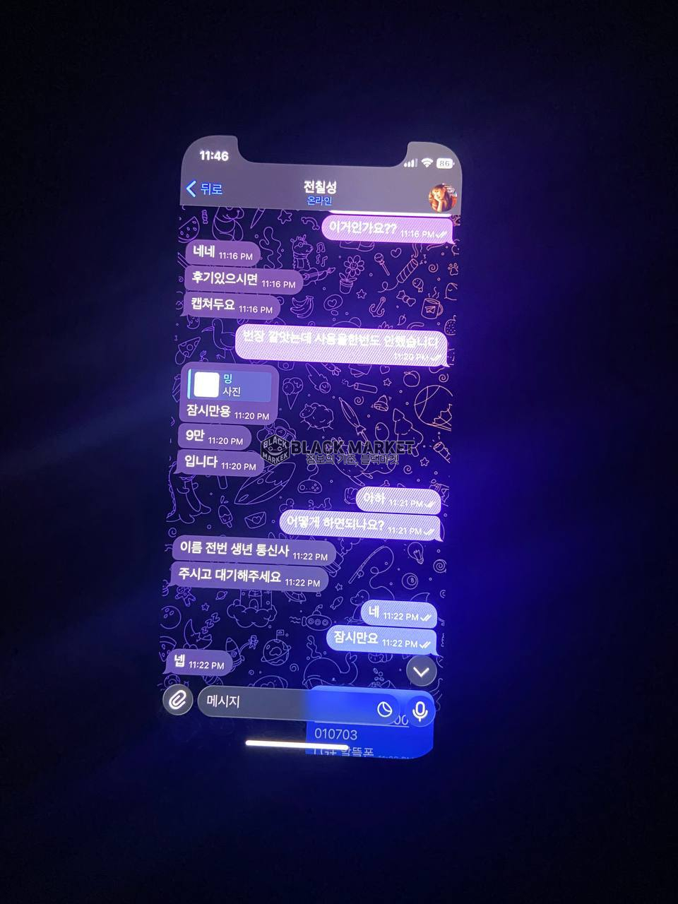 피해자는 텔레그램 사용자 ‘전칠성(@bodybiildrr01)’에게 번개장터 계정 9만원에 판매를 진행함.