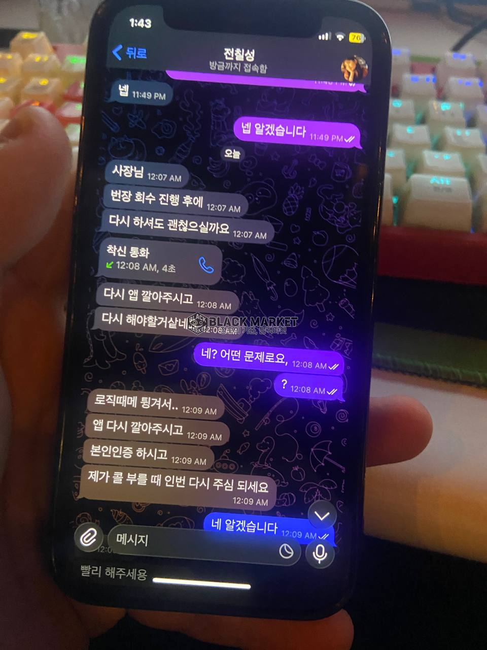 상대방은 “정산은 새벽에 들어온다”, “대표가 분할 송금한다”, “앱 재로그인 후 본인인증 다시 해달라” 등의 말로 시간을 끌며 지속적으로 피해자를 유도함.