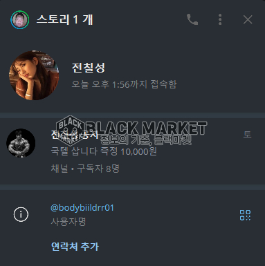- 텔레그램 프로필 : 여성 사진, ‘전칠성 공지’ 채널 운영