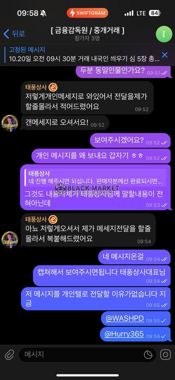 해당 인물군(@WASHPD, @Hurry365, @huuuui0039)은 동일 인물로 추정되며, 제휴사 및 중개거래 채널 이용금지 권장.