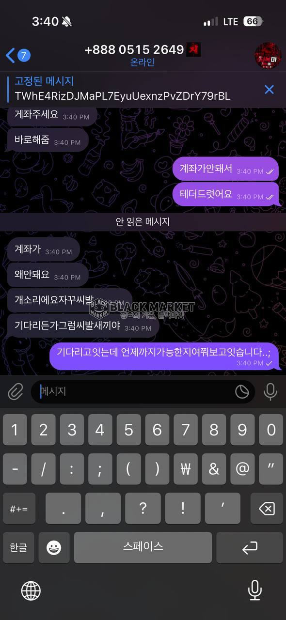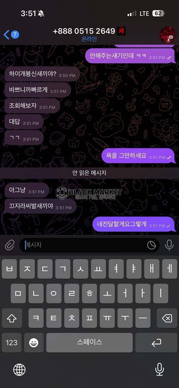 - 텔레그램 대화 캡처(욕설·지연·차단 흐름 명확)